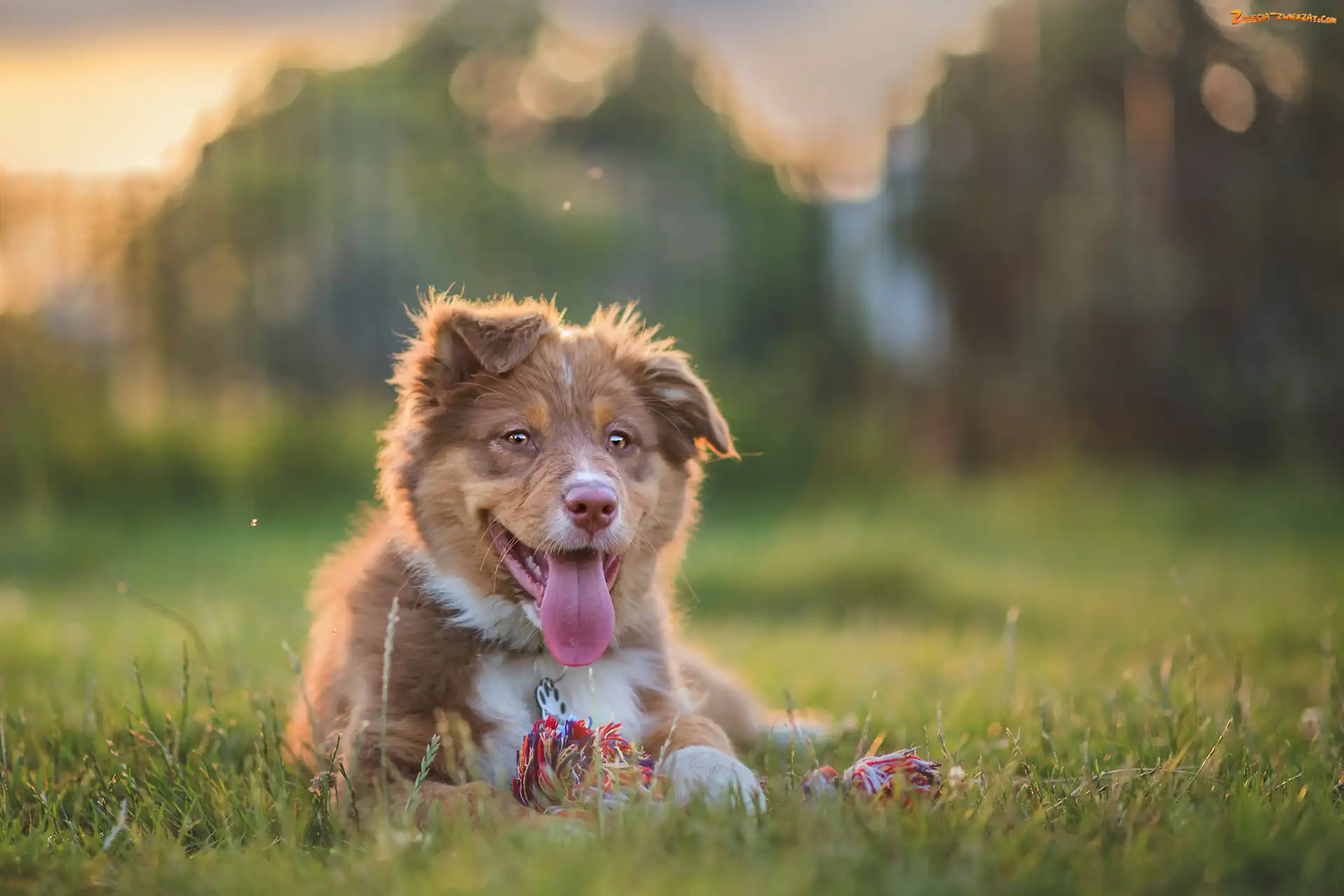 Zdjęcie: Łąka, Zabawka, Owczarek australijski, Trawa