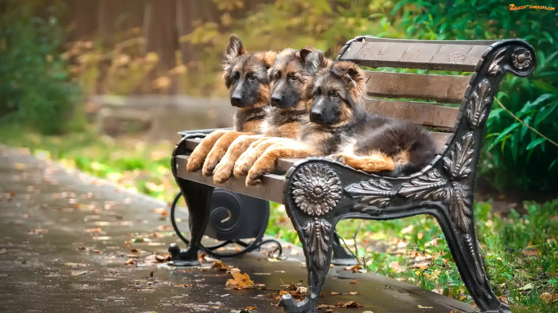 Zdjęcie: Ławka, Alejka, Szczeniaki, Trzy, Owczarki niemieckie