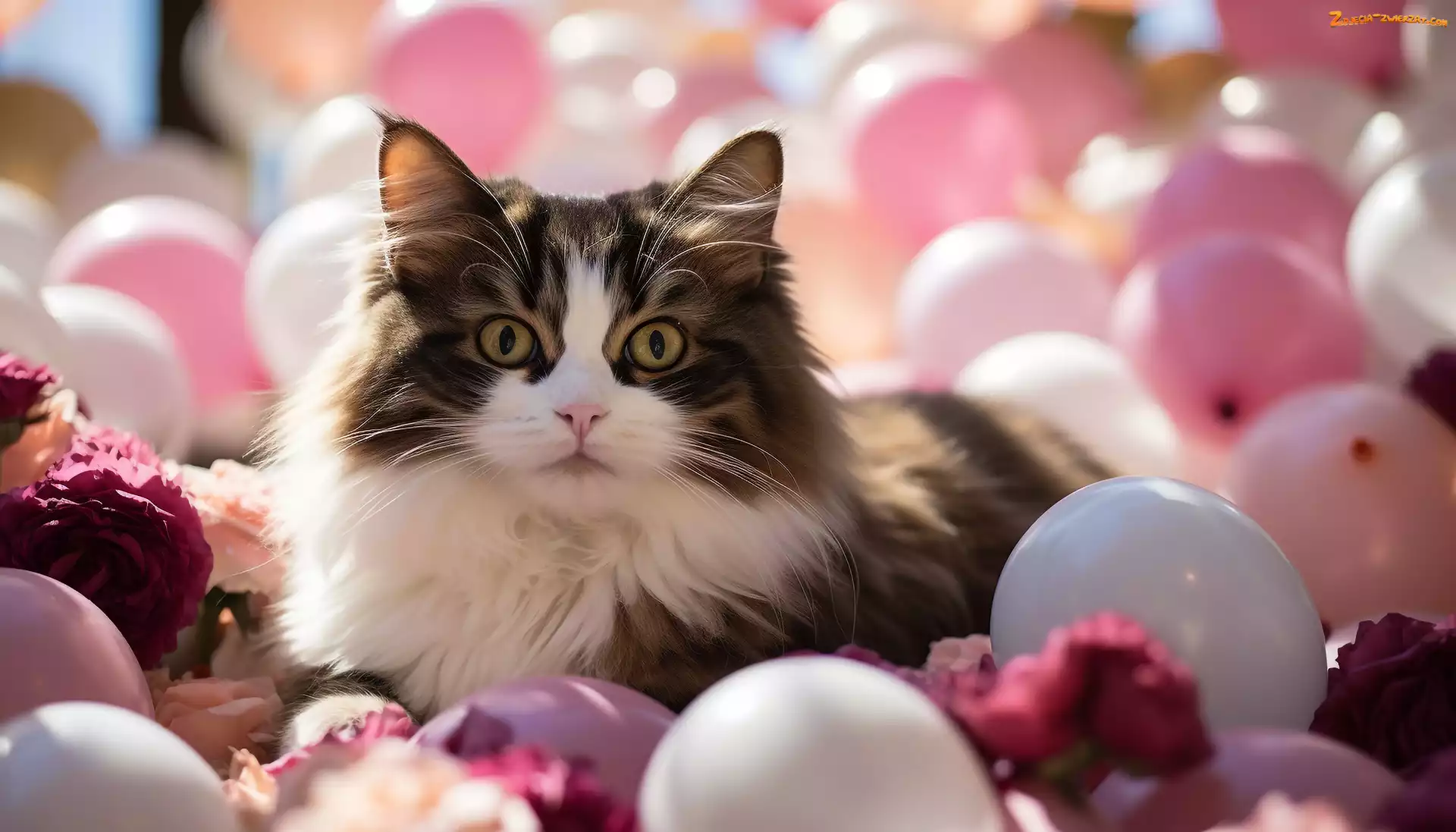 Zdjęcie: Kot, Spojrzenie, Grafika, Balony
