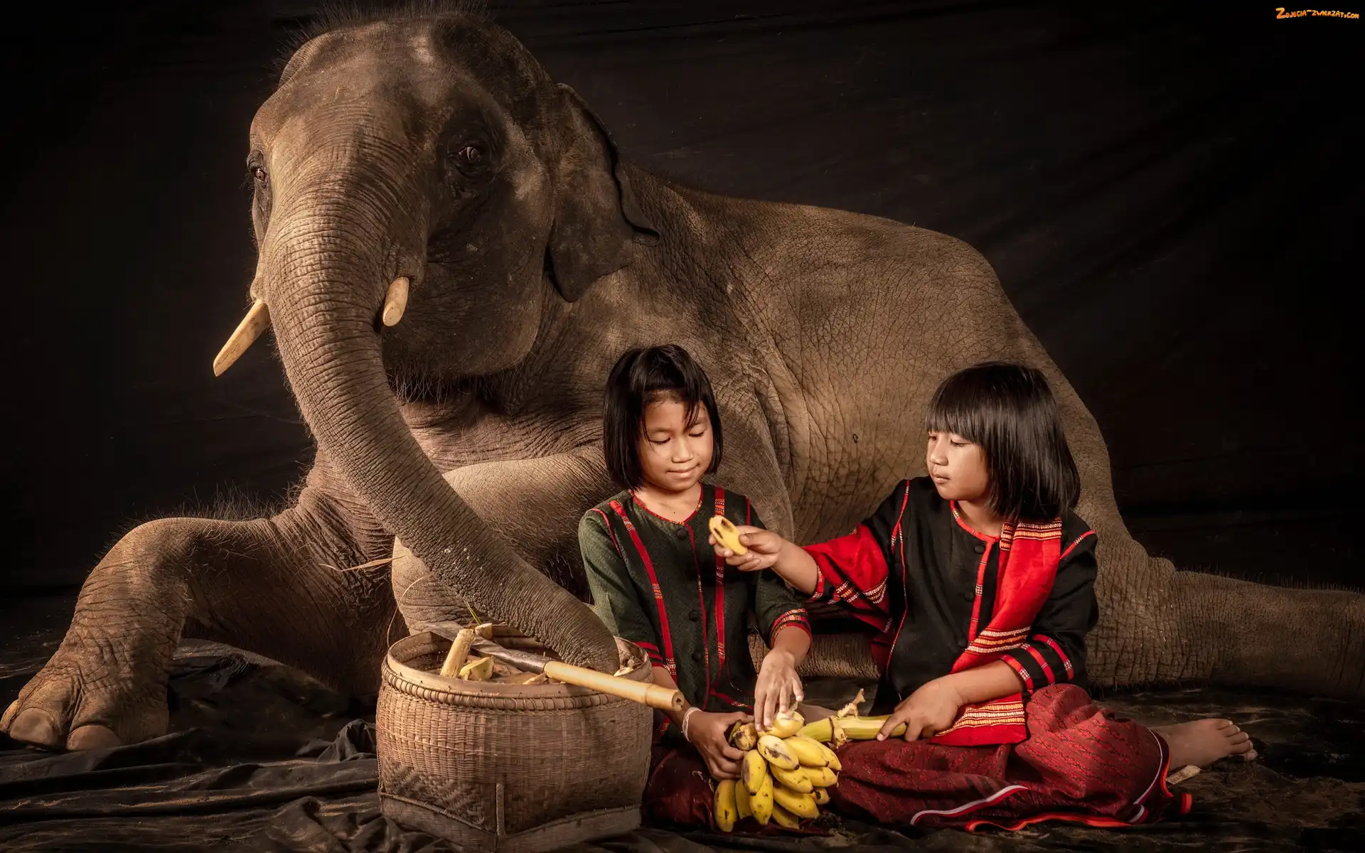 Zdjęcie: Banany, Słoń, Tło, Czarne, Dzieci, Kosz