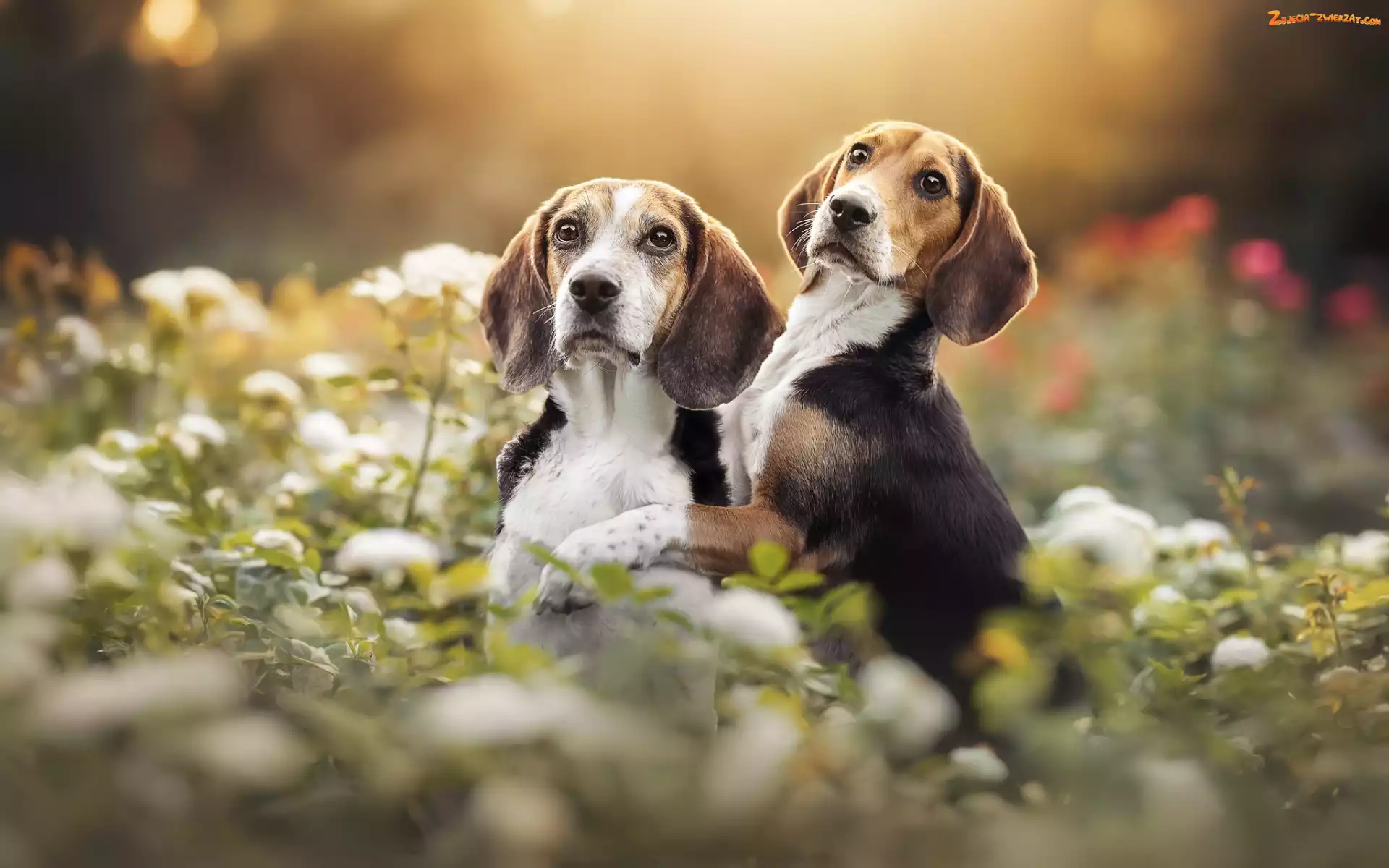 Dwa, Psy, Kwiaty, Beagle