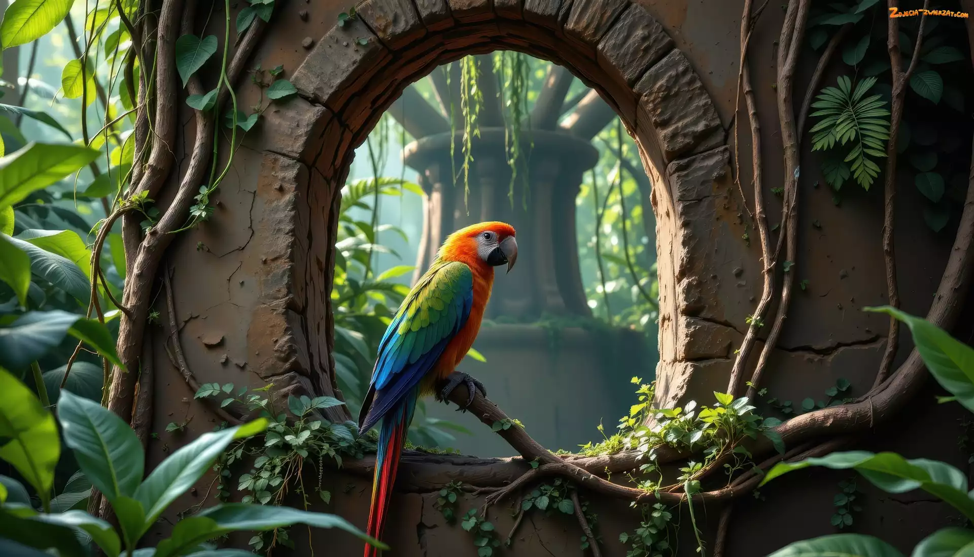 Zdjęcie: Ściana, Betonowa, Rośliny, Papuga, Ara