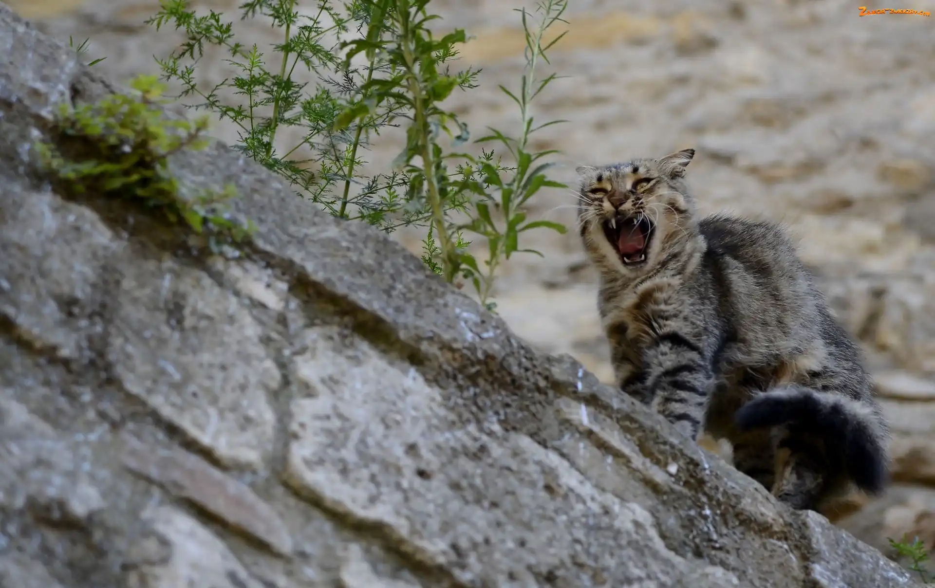 Zdjęcie: Betonowy, Roślinki, Kot, Mur
