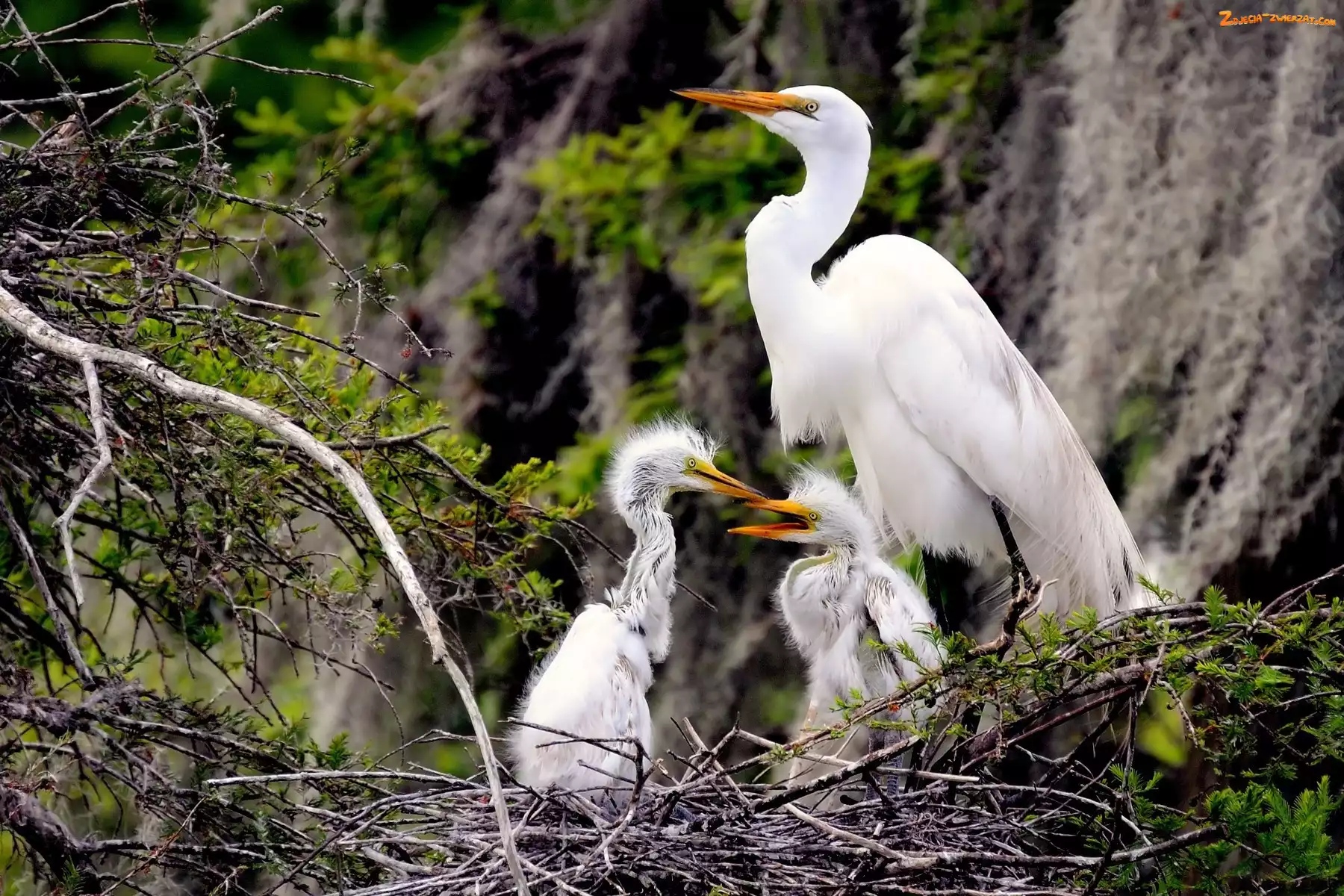 Zdjęcie: Biała, Gniazdo, Czapla, Młode