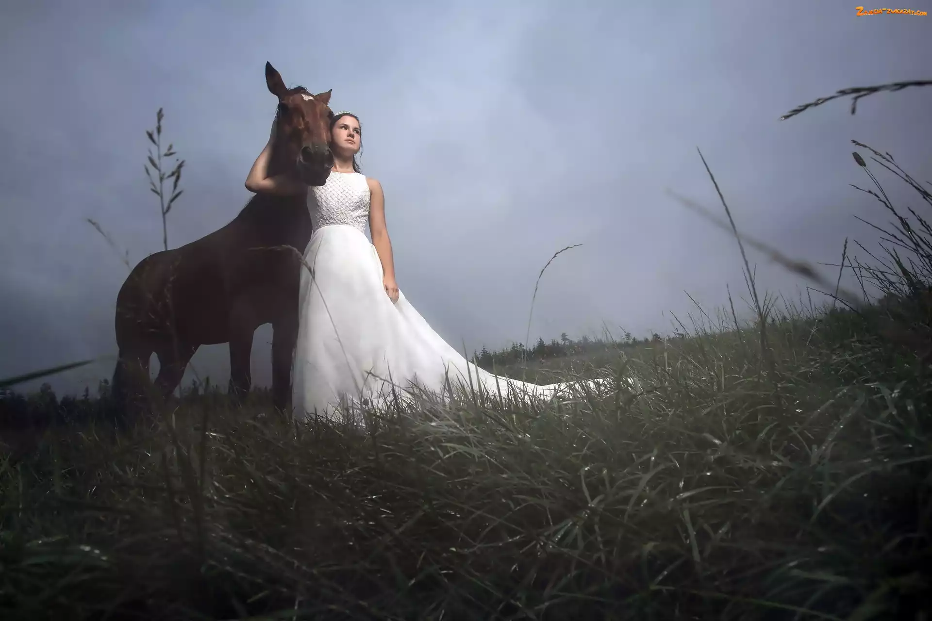 Zdjęcie: Biała, Koń, Kobieta, Sukienka