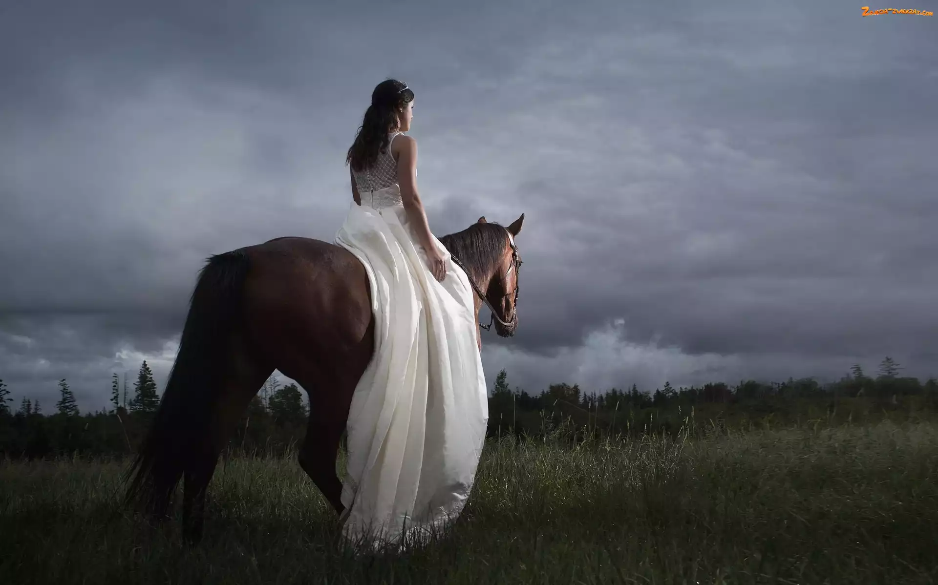 Zdjęcie: Zdjęciowa, Suknia, Kobieta, Panna młoda, Sesja, Biała, Koń
