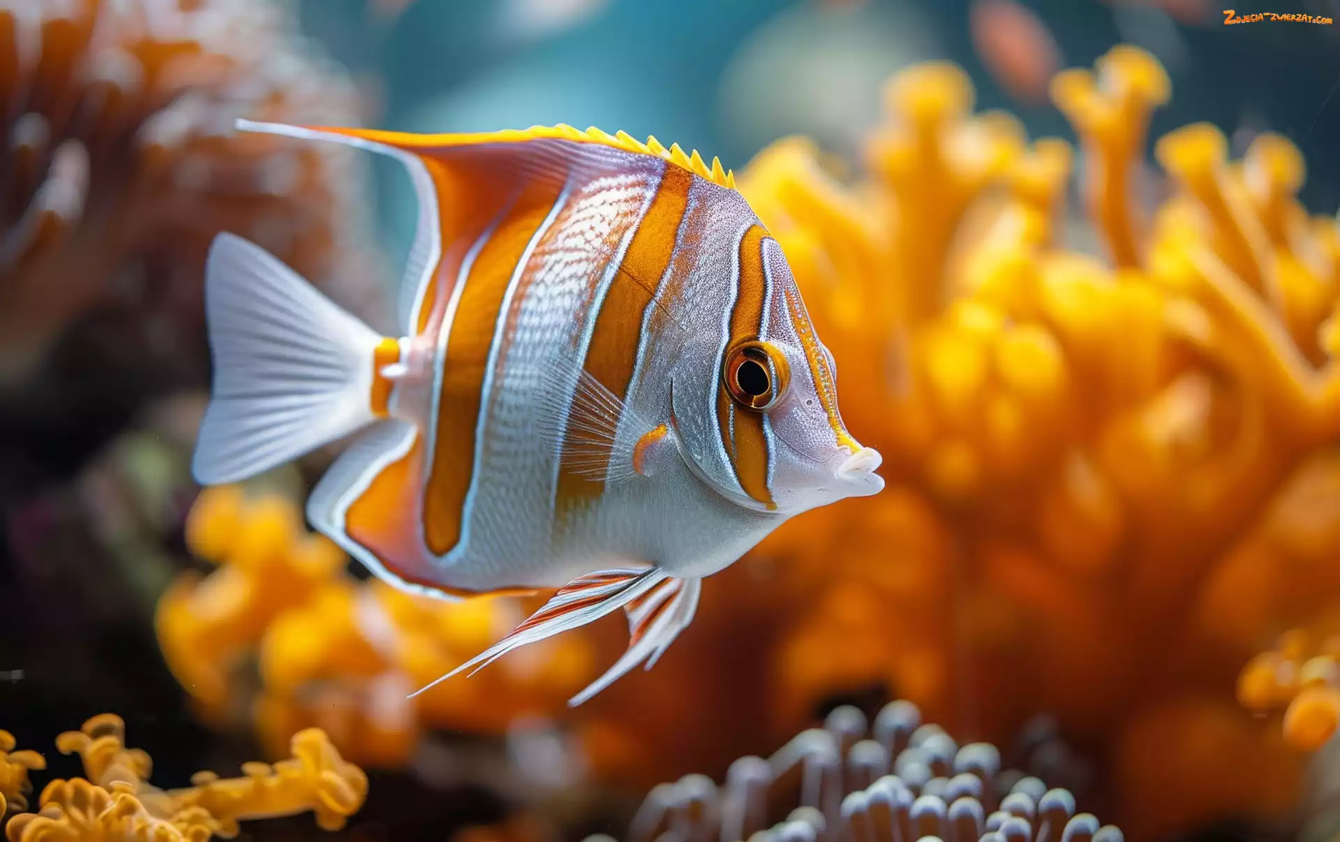 Żółto-biała, Ryba, Grafika, Koralowce