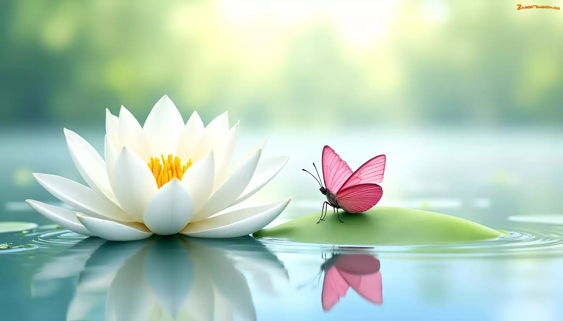 Zdjęcie: Motyl, Różowy, Grafika, Biała, Lilia wodna