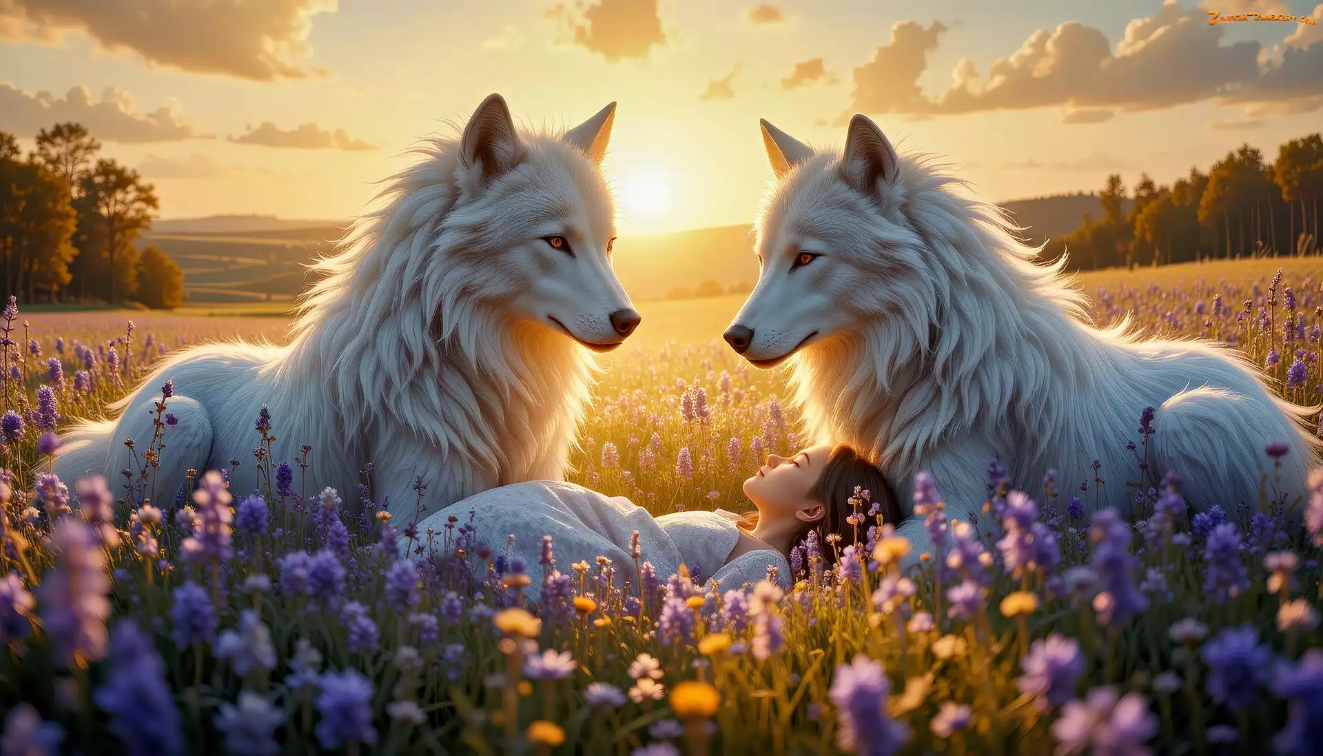 Zdjęcie: Dziewczynka, Białe, Grafika, Łąka, Wilki