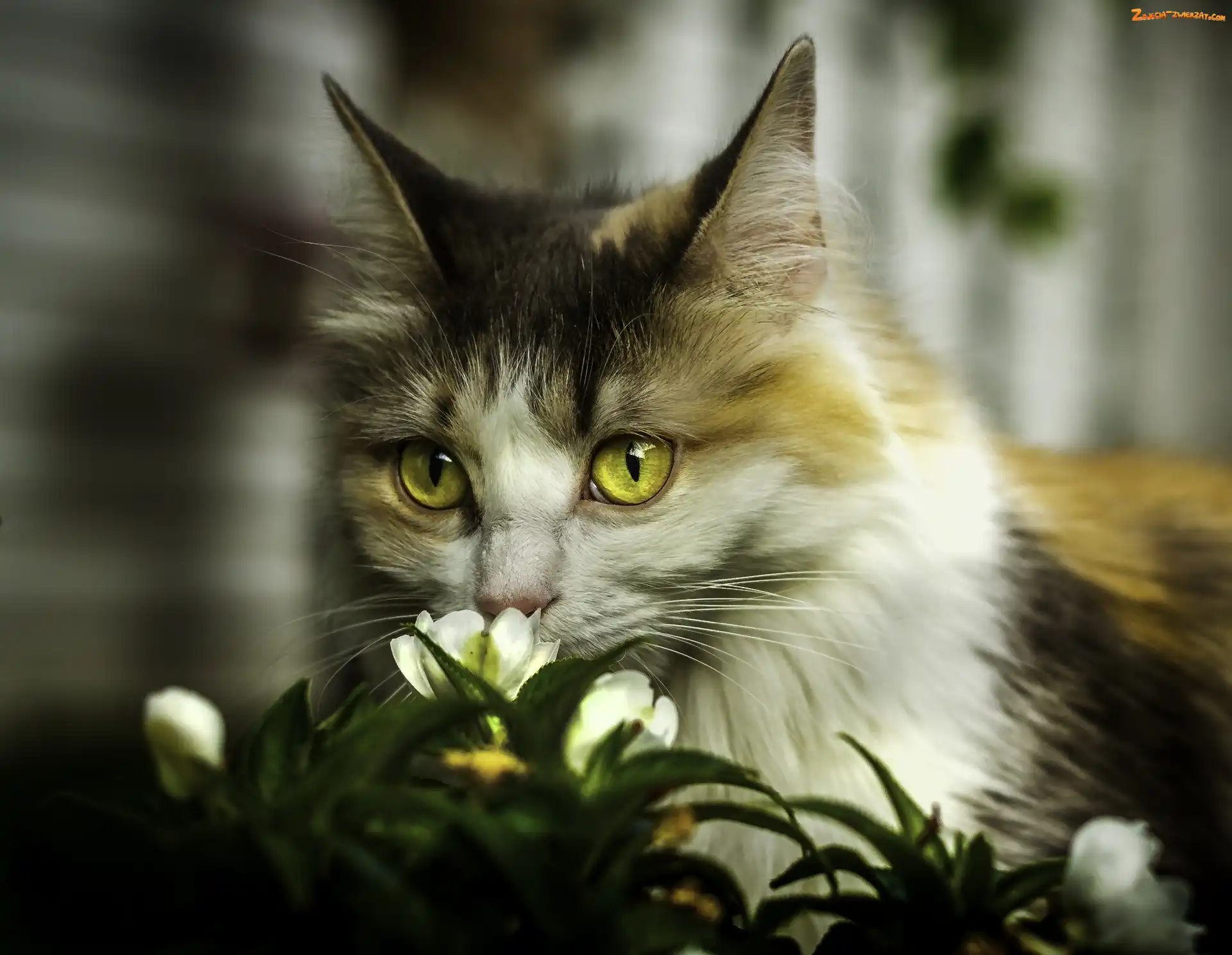Zdjęcie: Białe, Rozmycie, Kot, Kwiaty