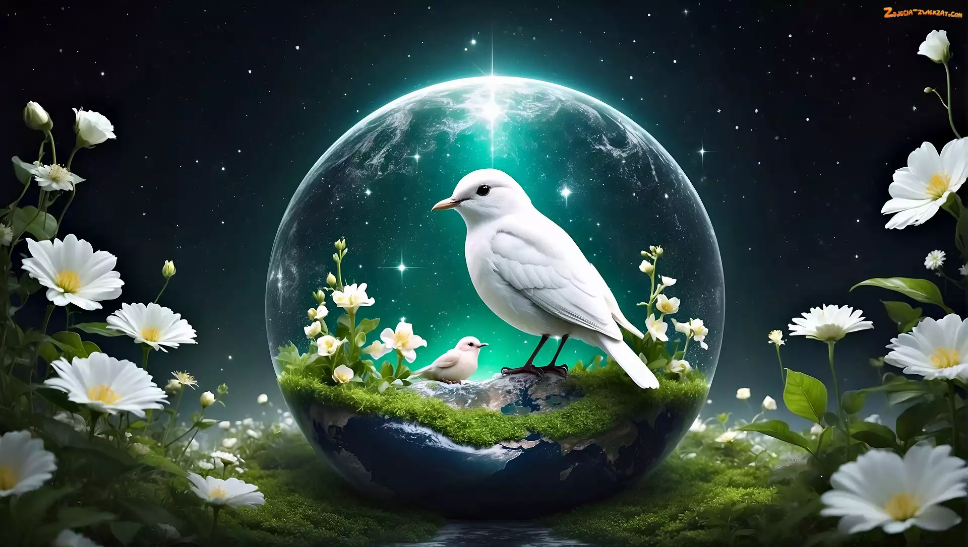 Zdjęcie: Ptaki, 2D, Kula, Białe, Kwiaty, Dwa, Białe