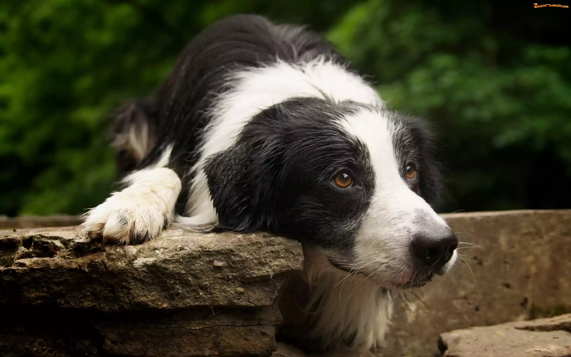 Zdjęcie: Pies, Biało, Border Collie, Oczy, Czarny, Brązowe