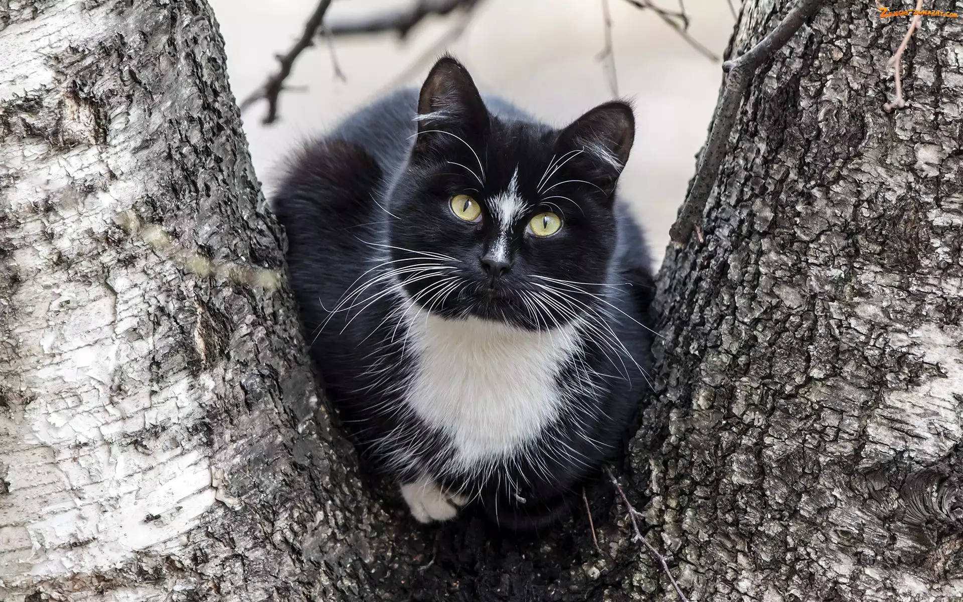 Zdjęcie: Drzewo, Kotek, Czarno-biały