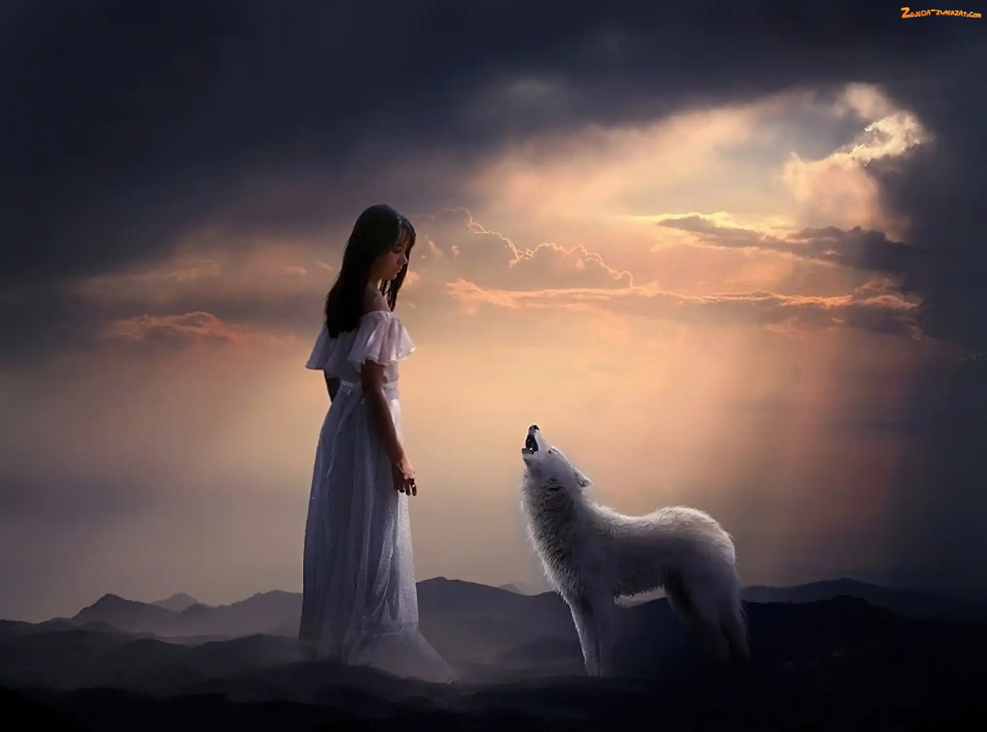 Zdjęcie: Biały, Chmury, Dziewczyna, Wilk