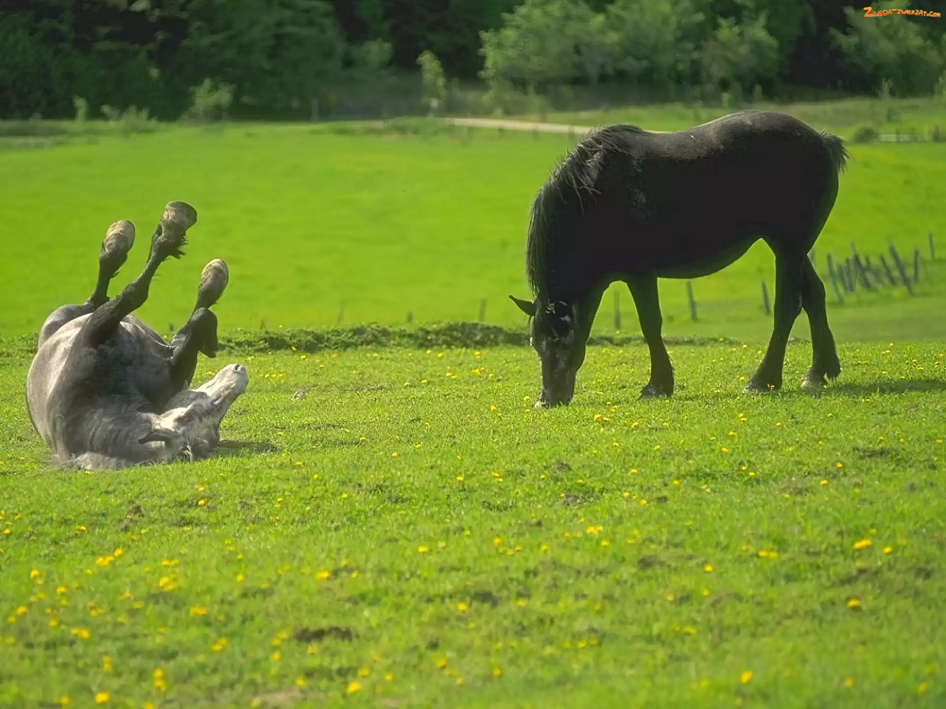 Zdjęcie: biały, czarny, konie, Koń, łąka