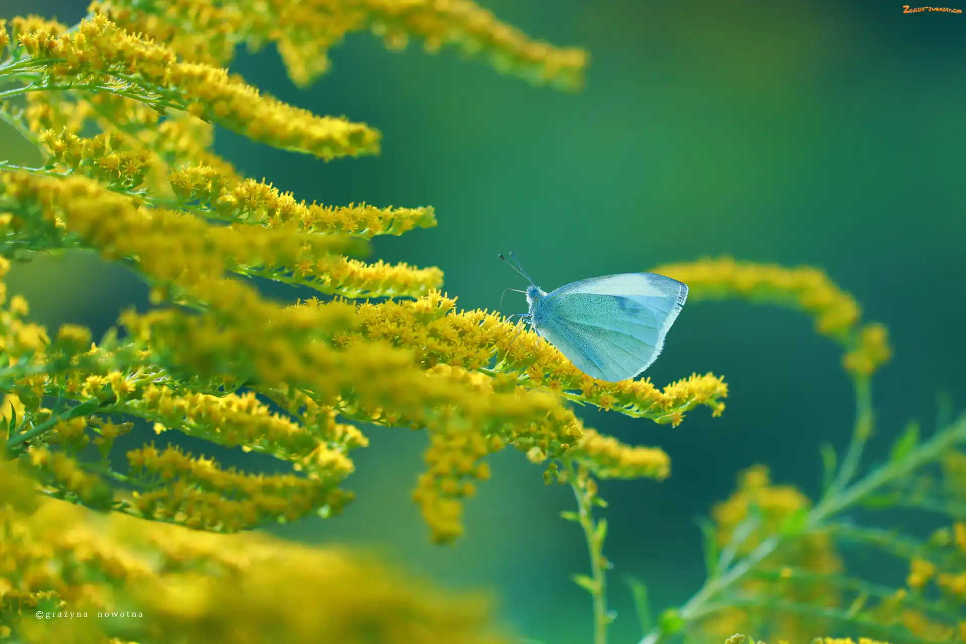 Bielinek, Motyl, Żółte, Nawłoć, Kwiaty