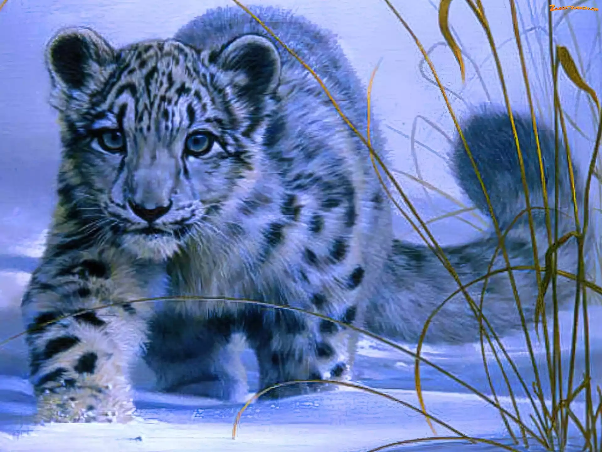 Zdjęcie: Lampart, Irbis, Biały, Śnieg