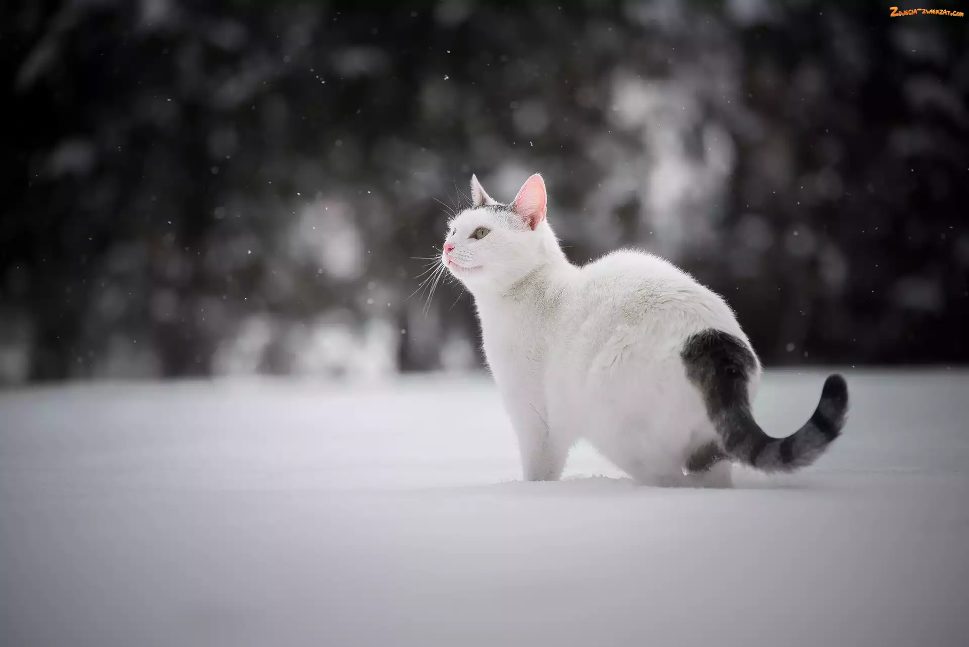 Zdjęcie: Śnieg, Ogon, Kot, Biały, Ciemny