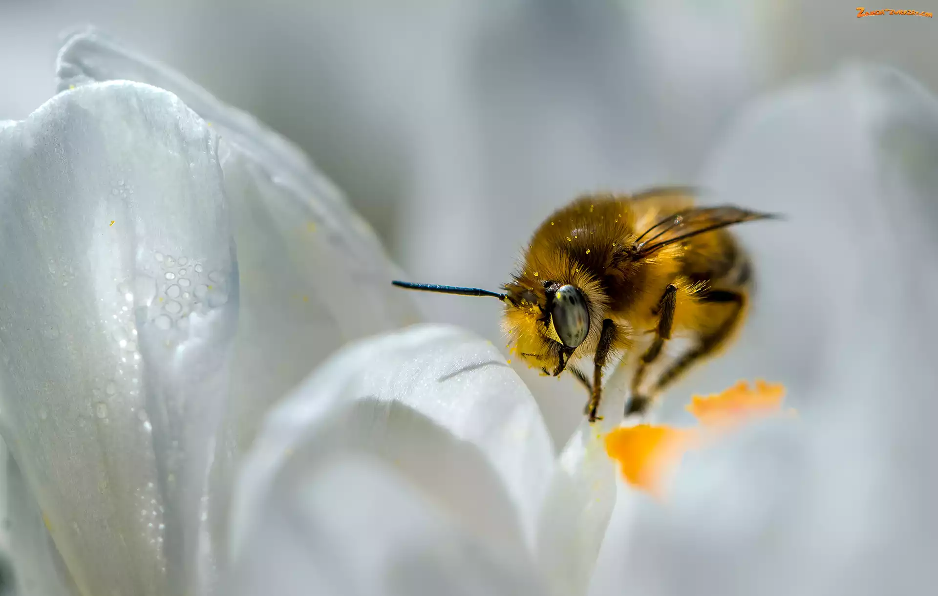 Zdjęcie: Biały, Makro, Pszczoła, Kwiat