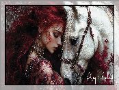 Zdjęcie: Rudowłosa, Kobieta, Koń, Biały