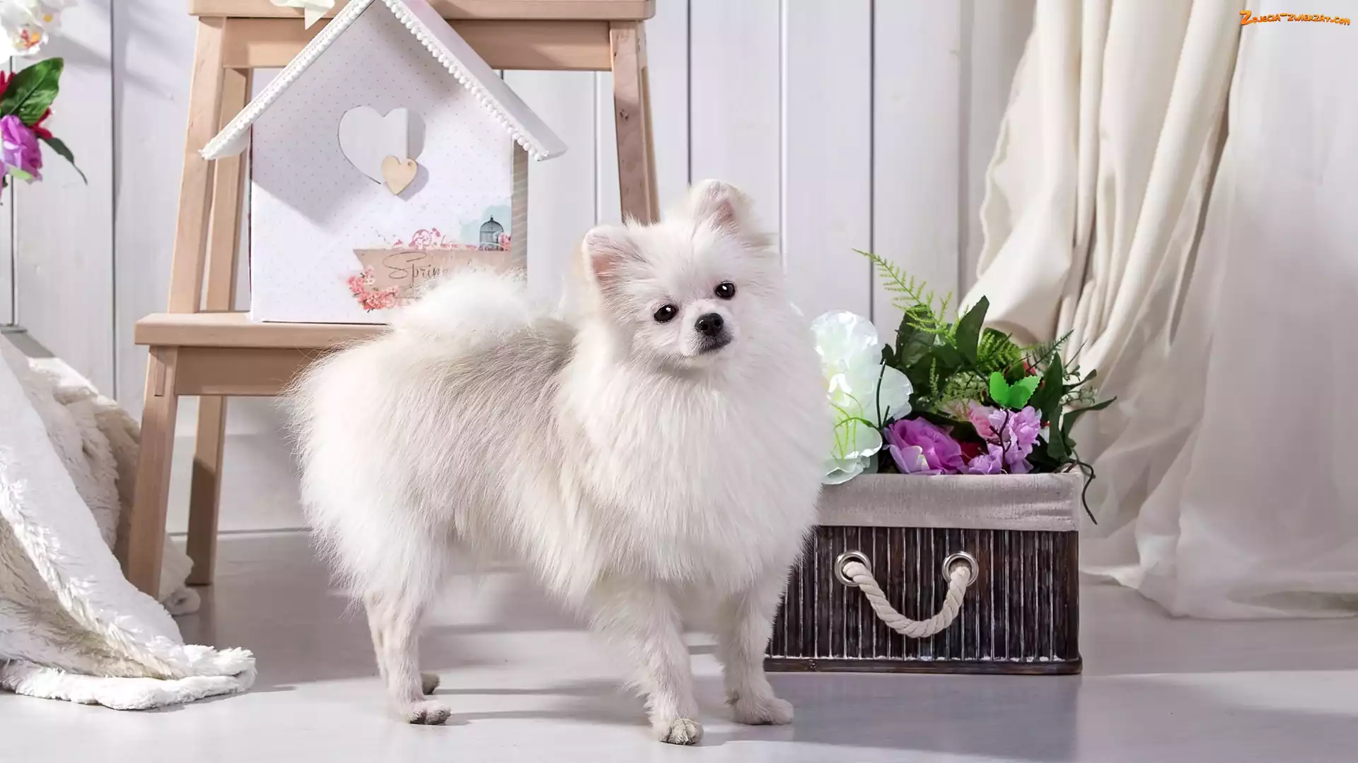 Zdjęcie: Biały, Pies, Szpic niemiecki