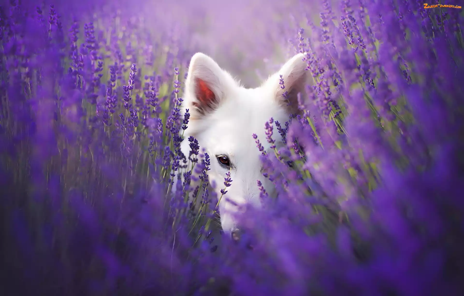 Zdjęcie: Biały owczarek szwajcarski, Lawenda