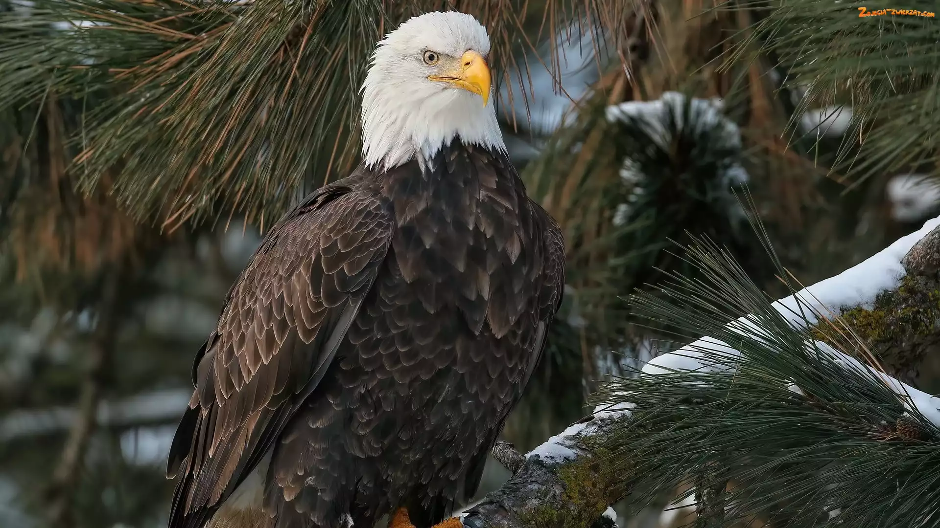 Zdjęcie: Ptak, Bielik amerykański, Sosna, Gałęzie