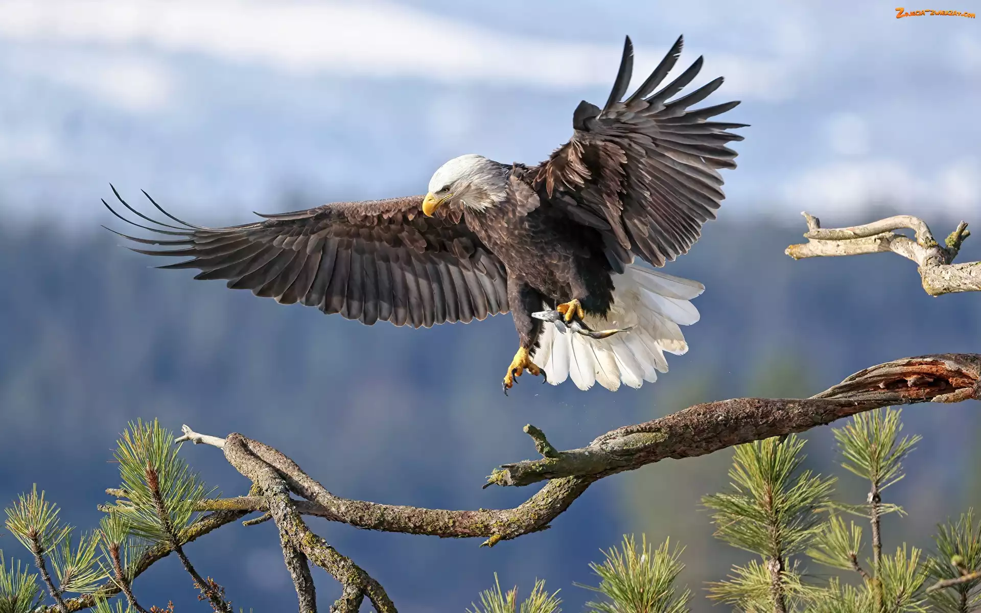 Zdjęcie: Bielik amerykański, Gałęzie, Ptak, Lot