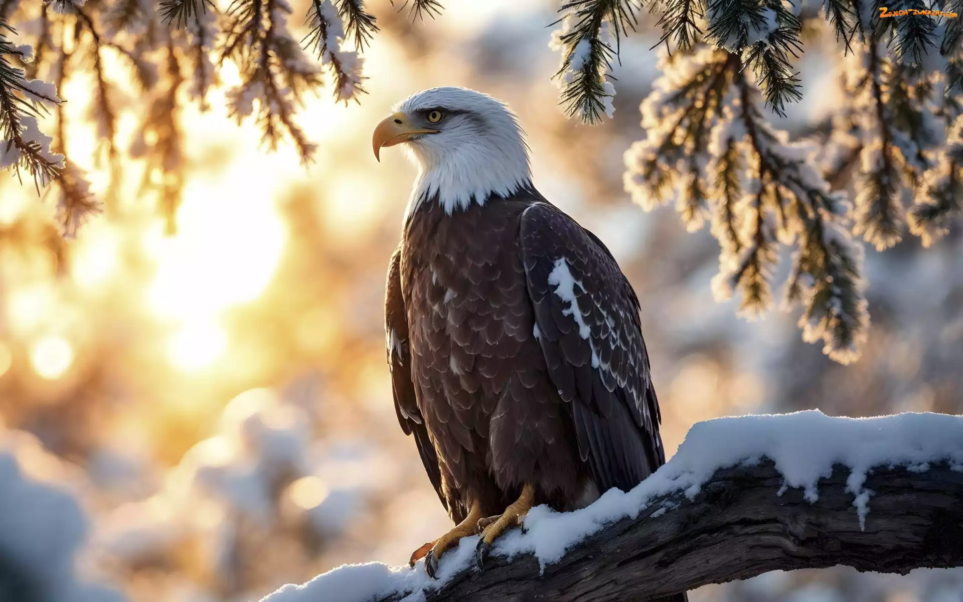 Zdjęcie: Światło, Konar, Ptak, Bielik amerykański, Gałązki, Śnieg