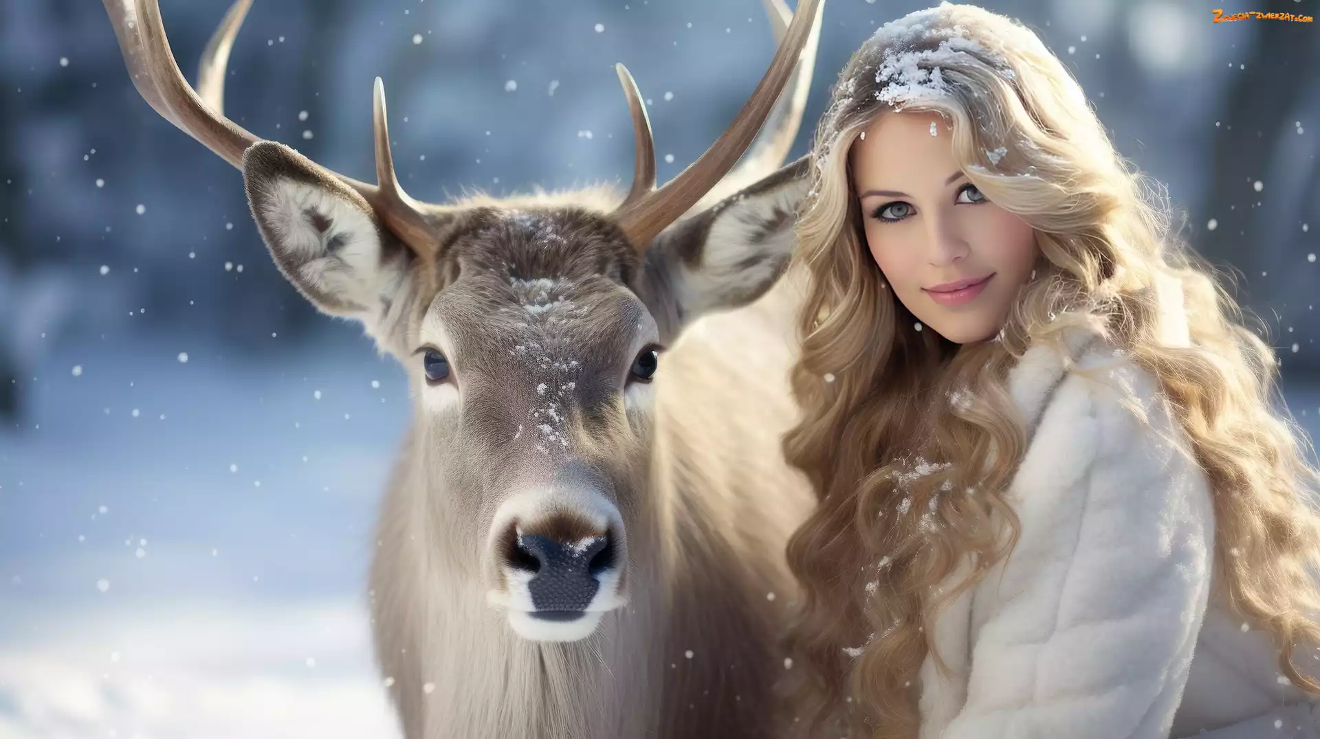 Zdjęcie: Grafika, Dziewczyna, Jeleń, Blondynka