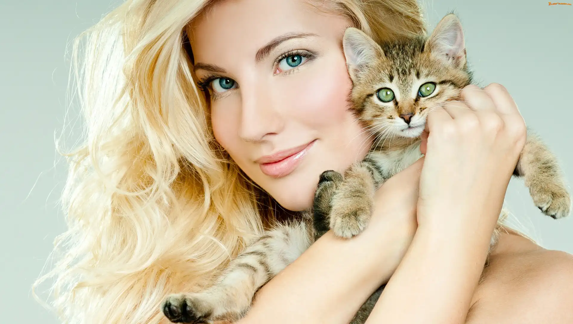 Zdjęcie: Blondynka, Kotek, Kobieta, Mały