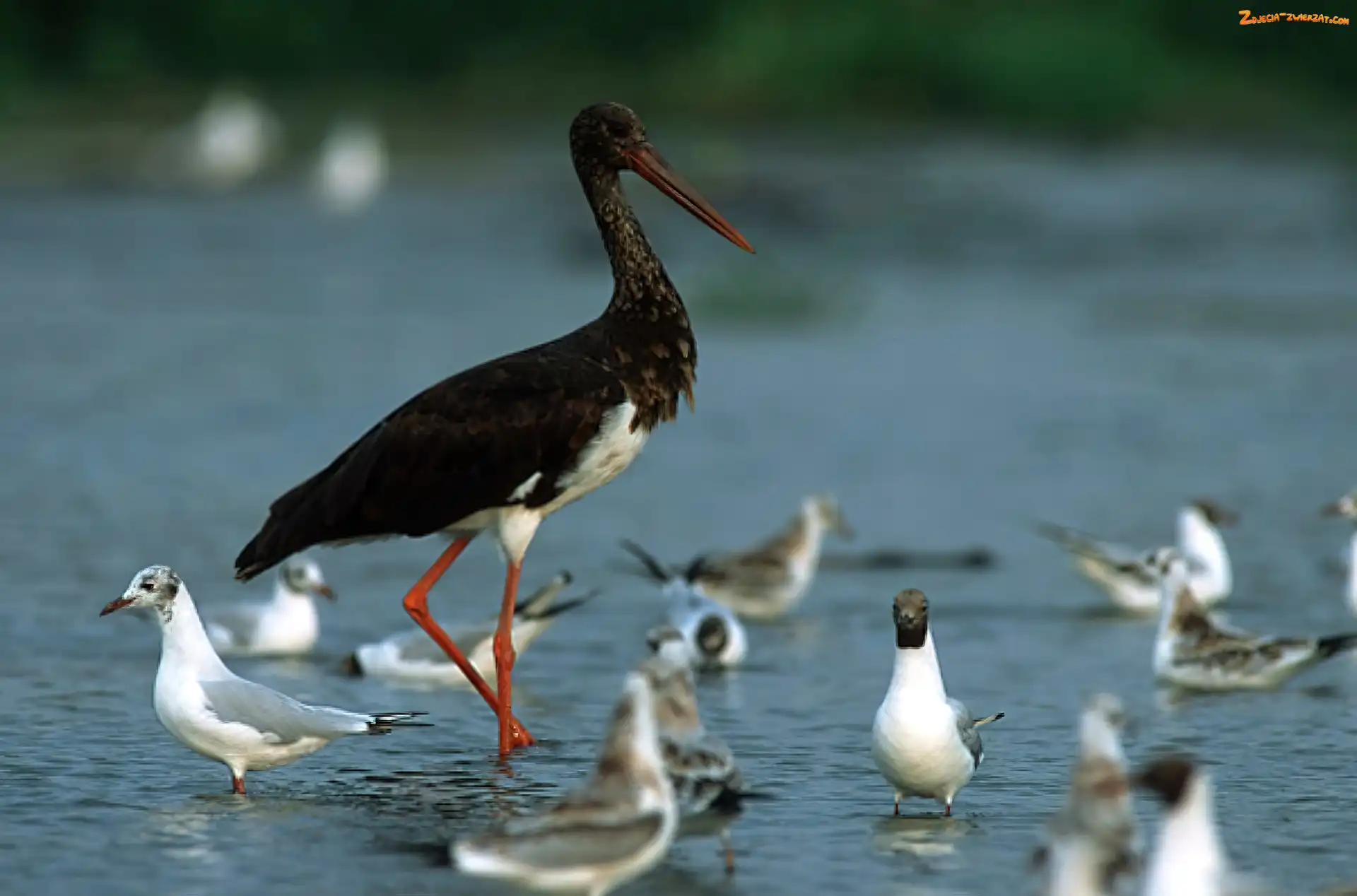 Zdjęcie: Czarny, Bocian, Woda, Mewy