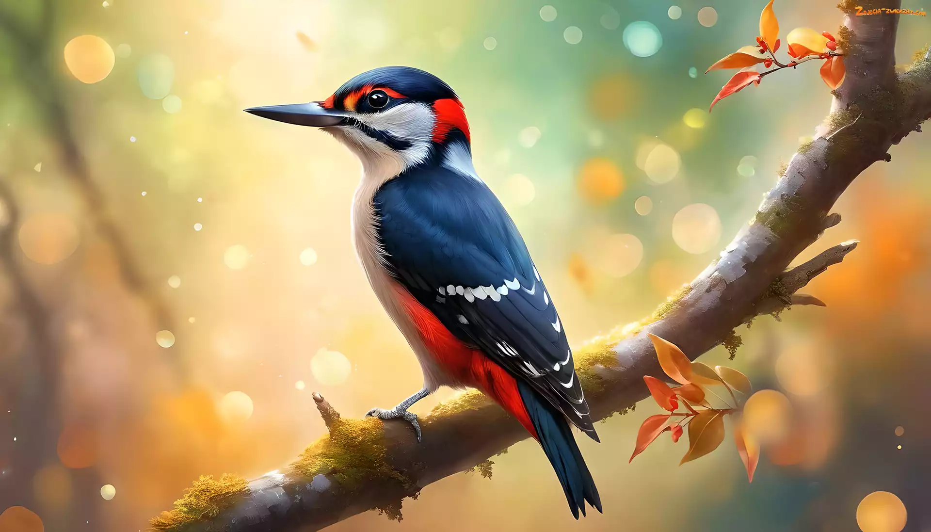 Zdjęcie: Dzięcioł, Gałąź, Grafika, Bokeh