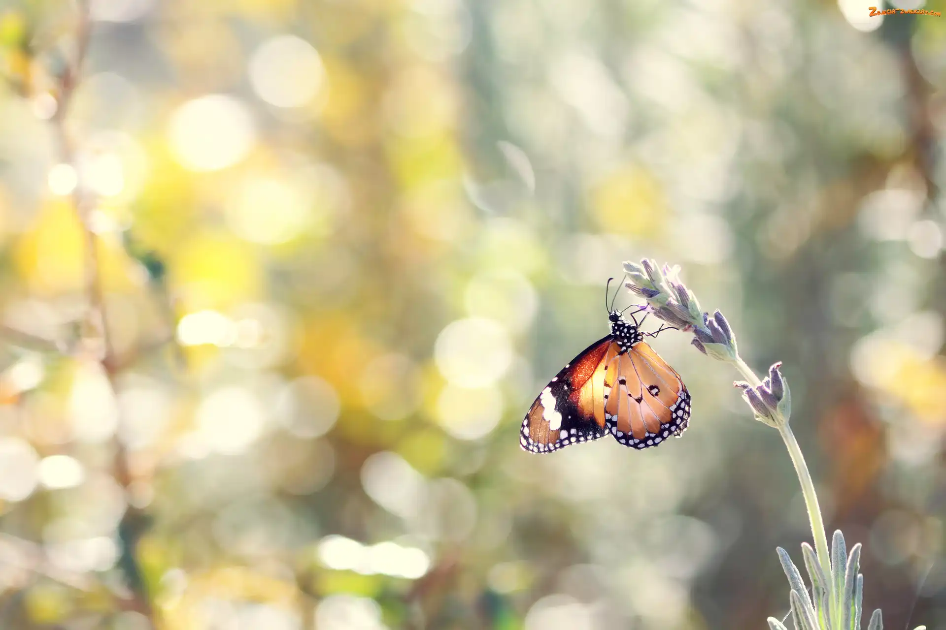 Zdjęcie: Bokeh, Tło, Lawenda, Motyl monarcha, Rozmyte