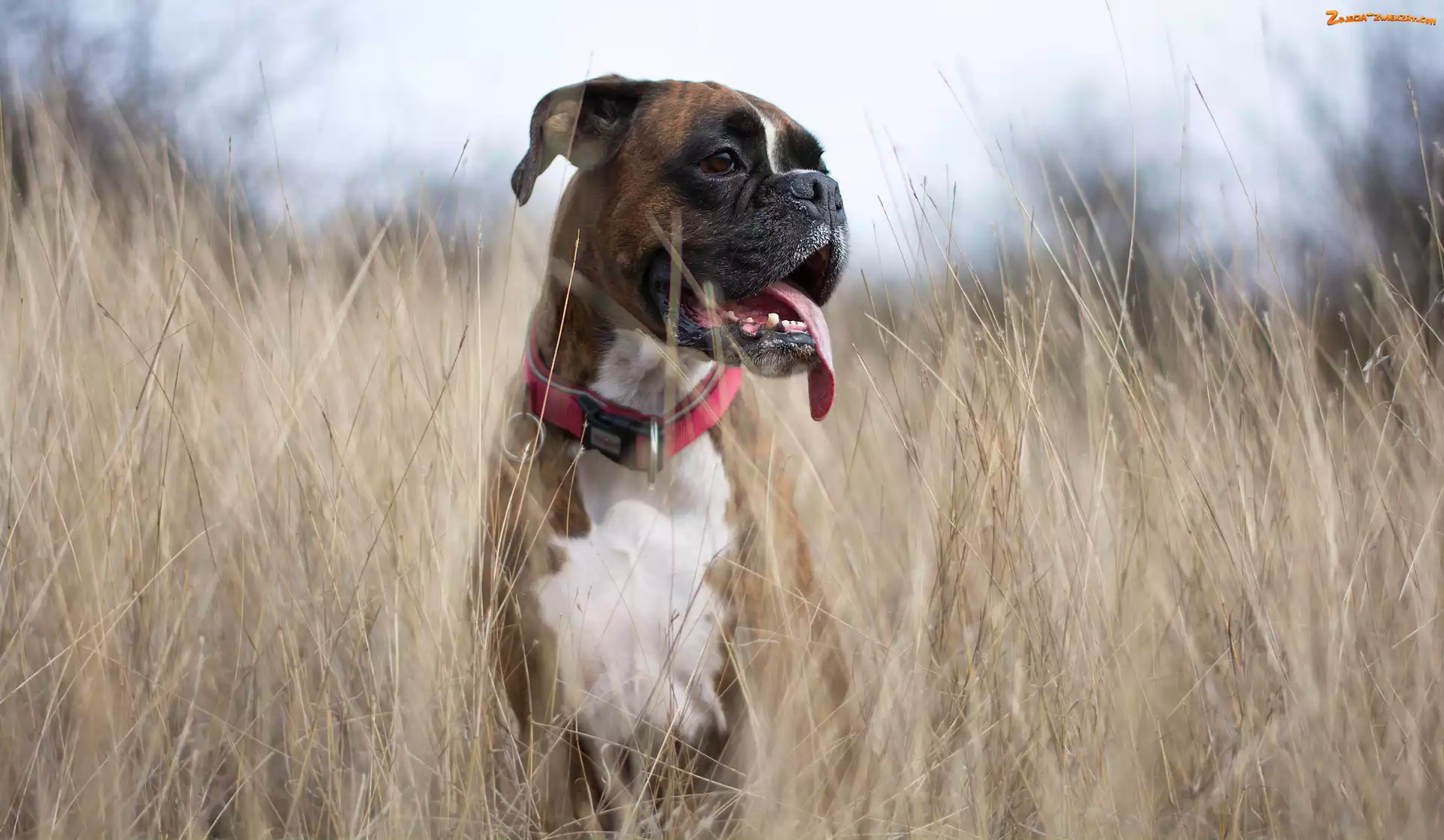 Zdjęcie: Bokser, Obroża, Pies, Trawa