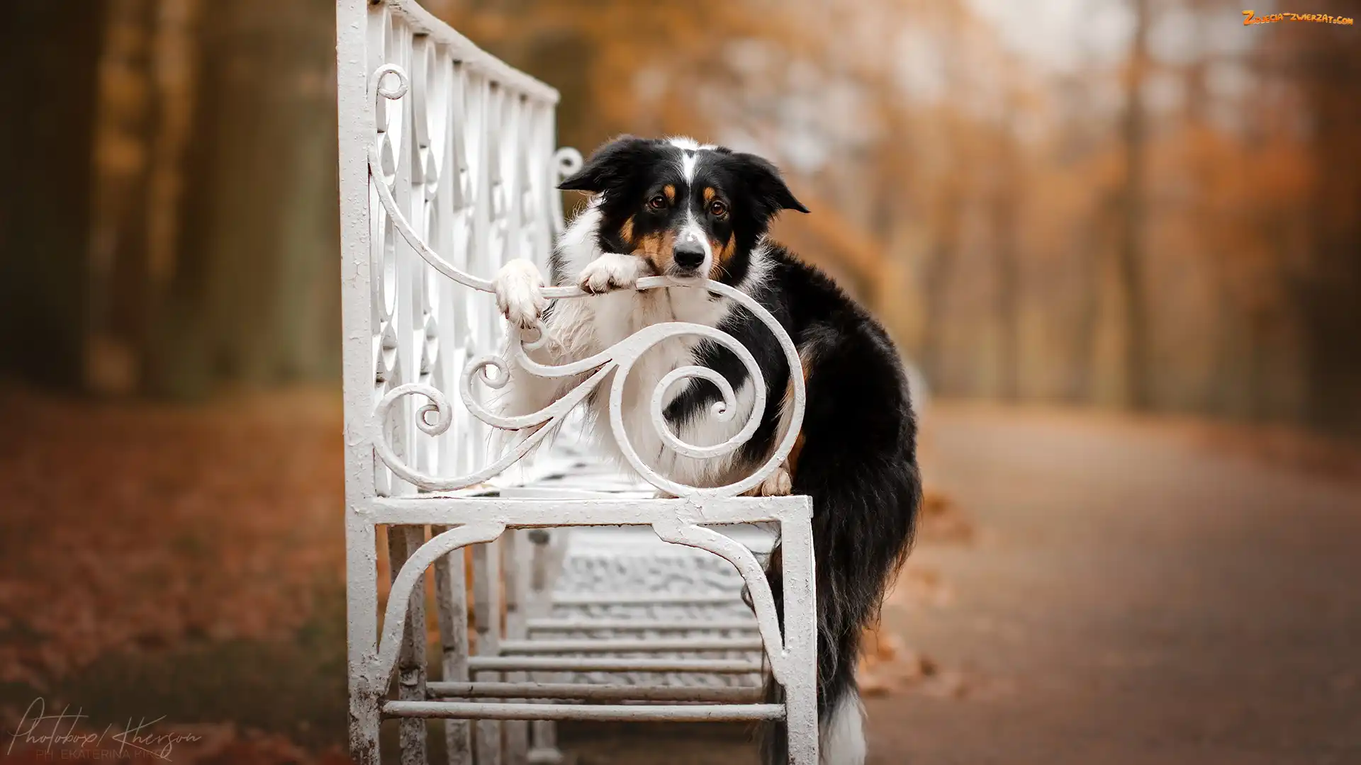 Zdjęcie: Border collie, Ławka, Pies, Biała