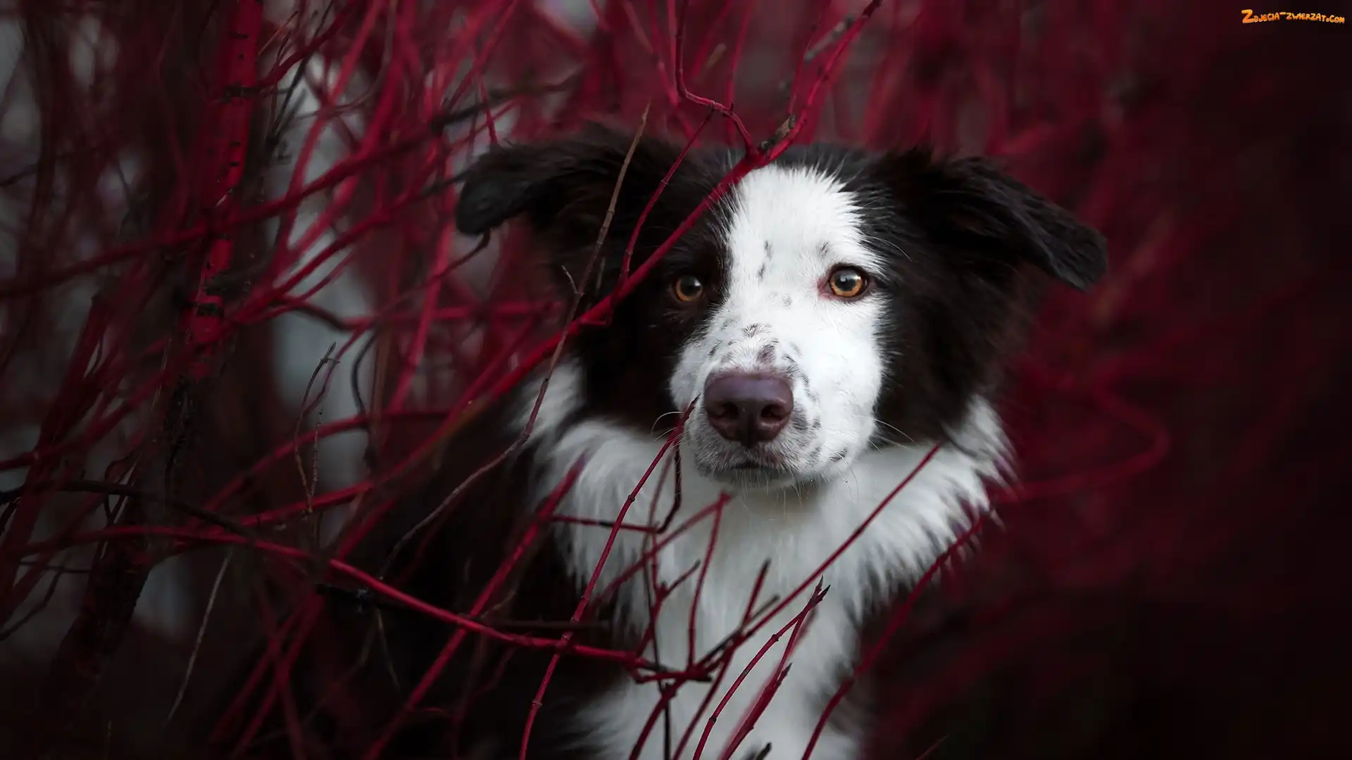 Zdjęcie: Border collie, Gałązki, Pies, Mordka