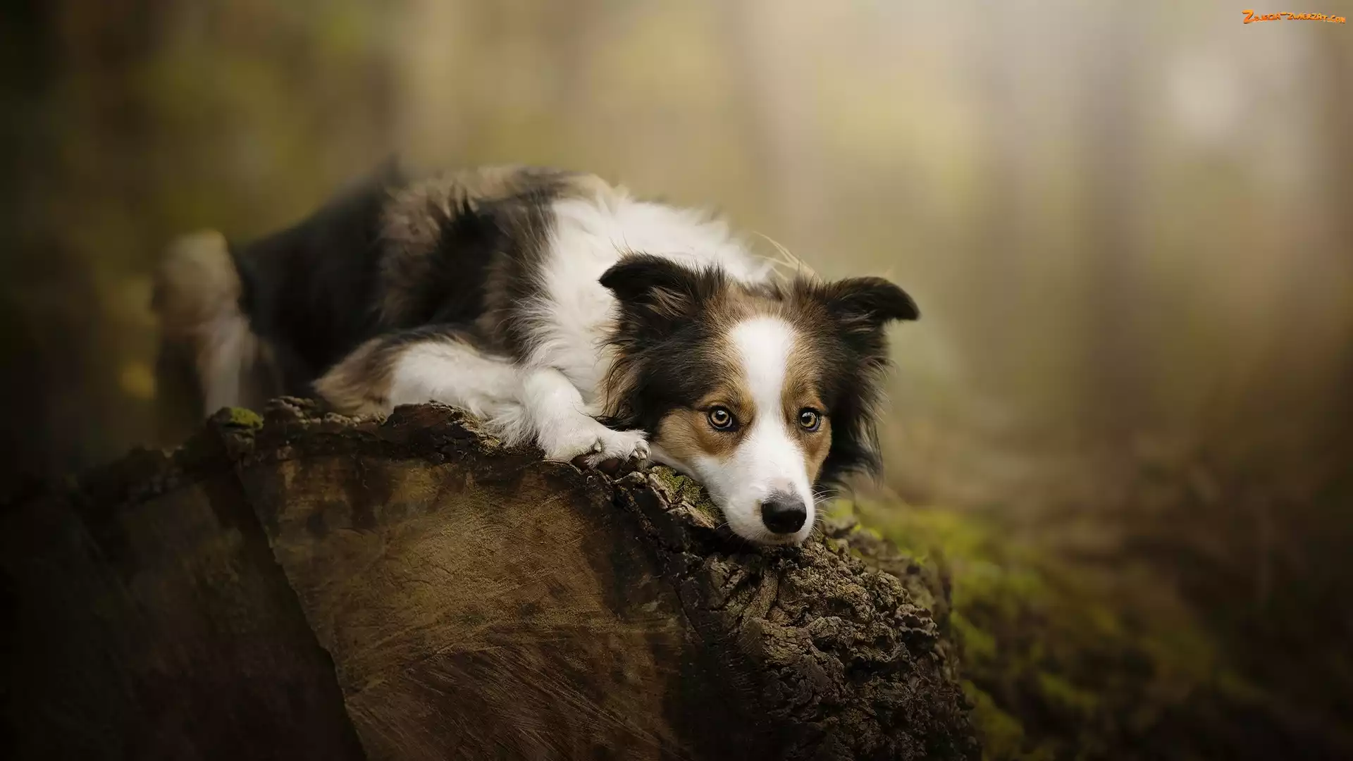 Zdjęcie: Border collie, Kłoda, Pies, Mordka