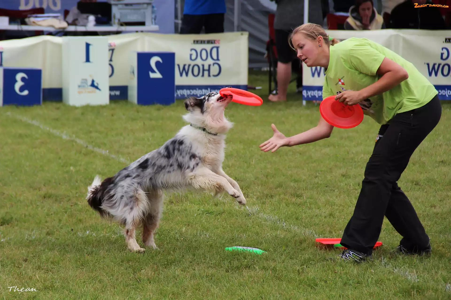 Zdjęcie: Border Collie, Kobieta, Pies, Frisbee