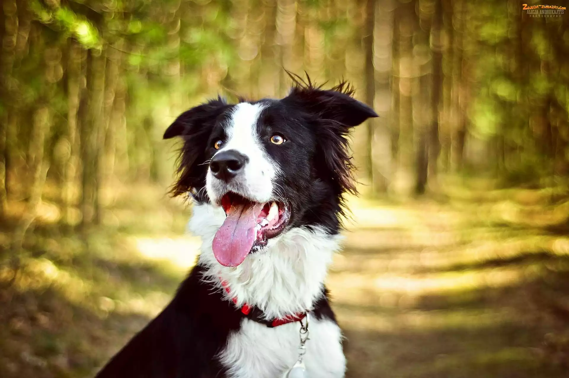 Zdjęcie: Border collie, Las, Pies, Jęzor