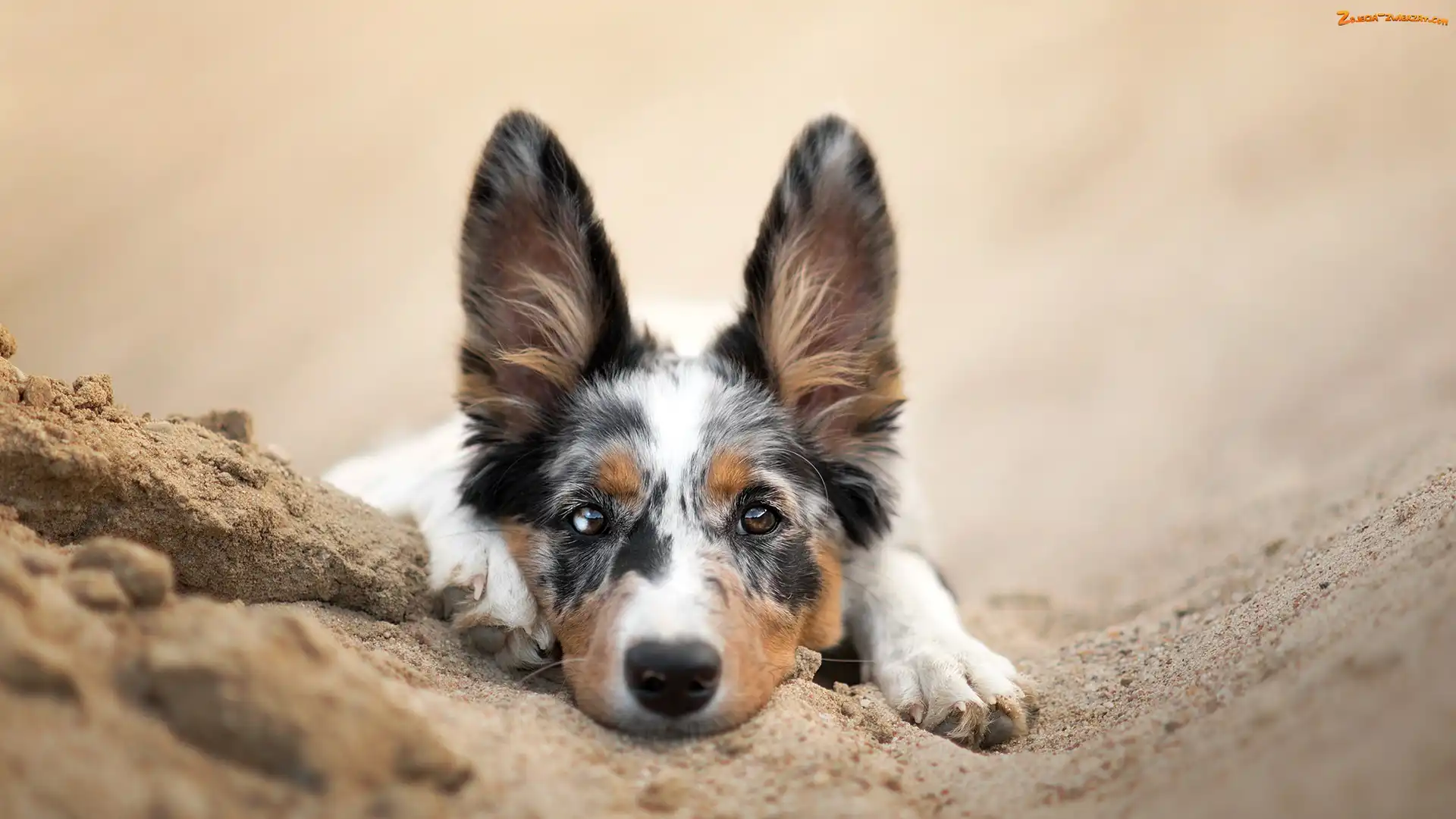 Zdjęcie: Border collie, Piasek, Pies, Mordka