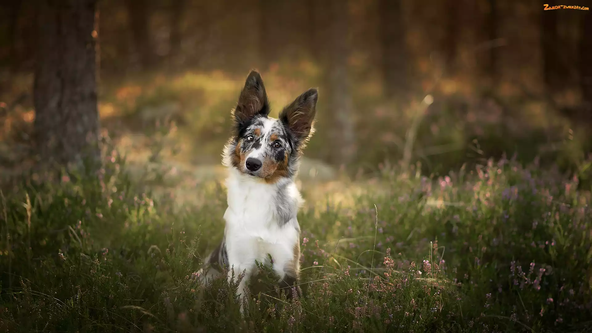 Zdjęcie: Border collie, Wrzos, Pies, Drzewa