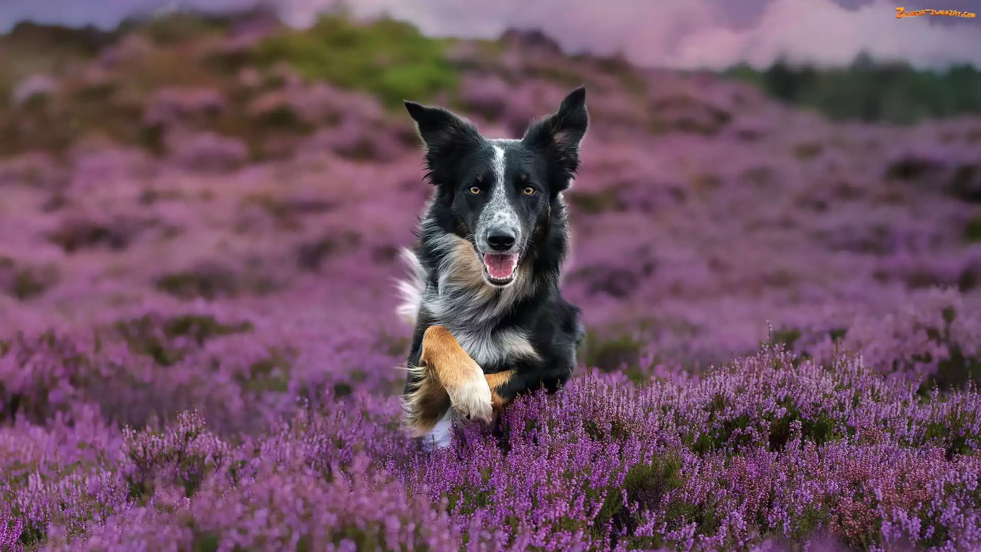 Border collie, Wrzosowisko, Pies, Wrzosy