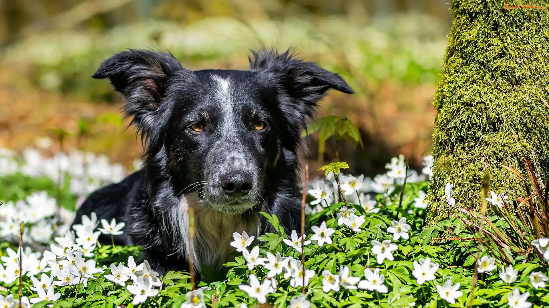 Border collie, Zawilce gajowe, Pies, Kwiaty