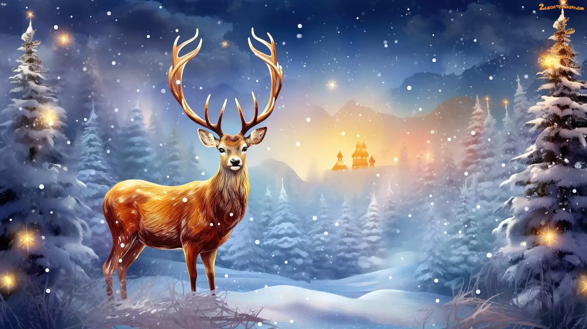 Zdjęcie: Ośnieżone, Zima, Grafika, Boże Narodzenie, Jeleń, Choinki