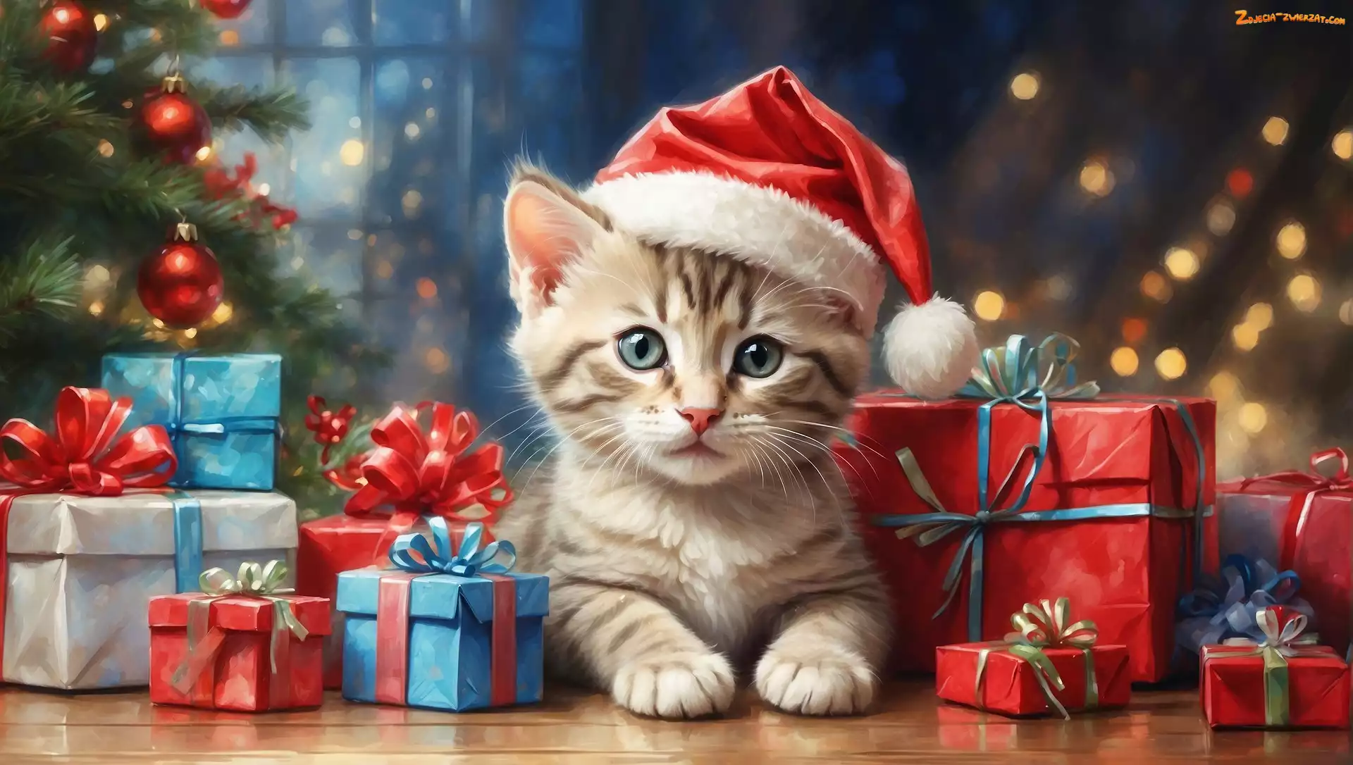 Zdjęcie: Choinka, Prezenty, 2D, Boże Narodzenie, Kotek