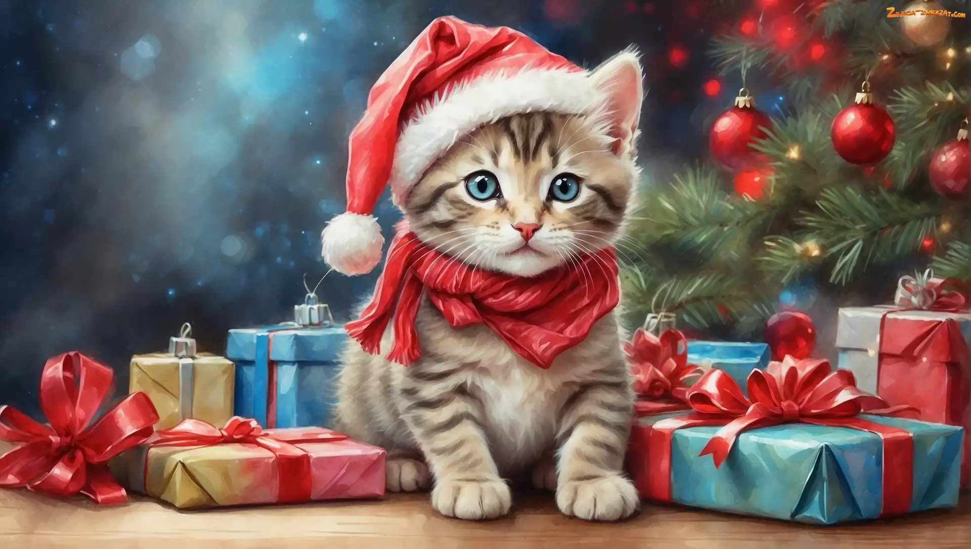 Zdjęcie: Prezenty, Kotek, Choinka, Boże narodzenie, Świąteczne