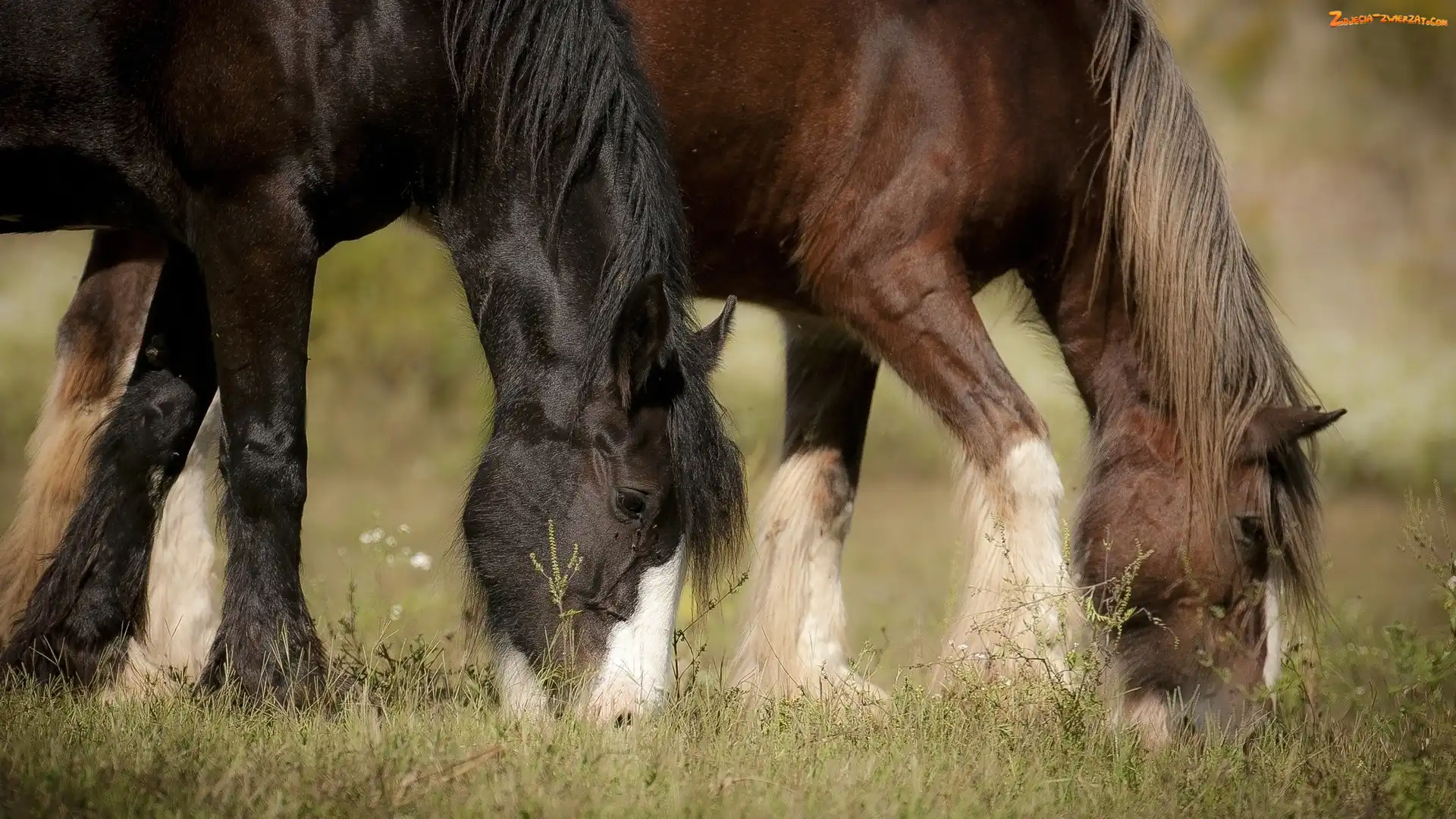 Zdjęcie: Brązowe, Łąka, Dwa, Konie