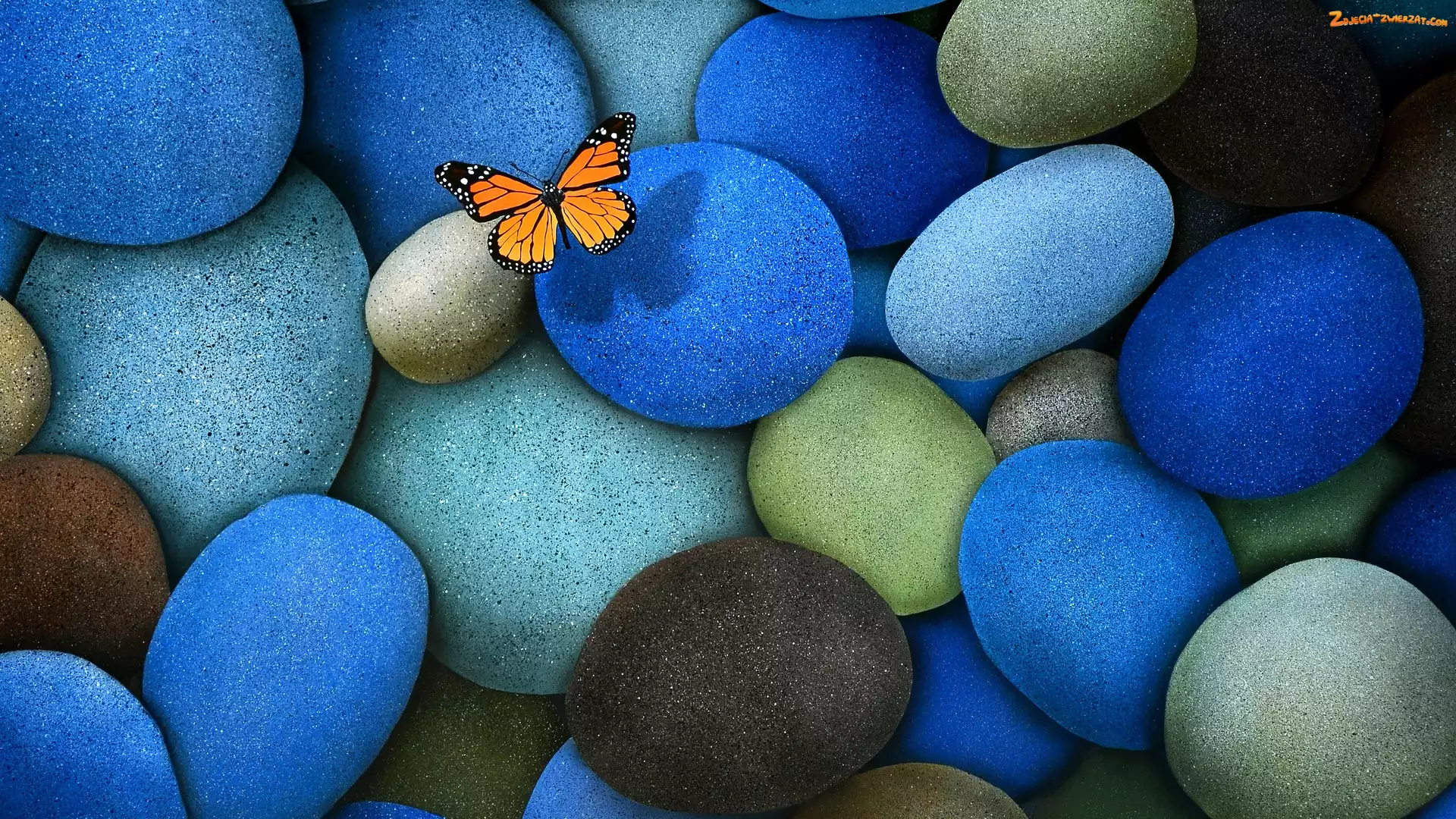 Monarch, Brązowe, Niebieskie , Pomarańczowy, Motyl, Szare, Kamienie