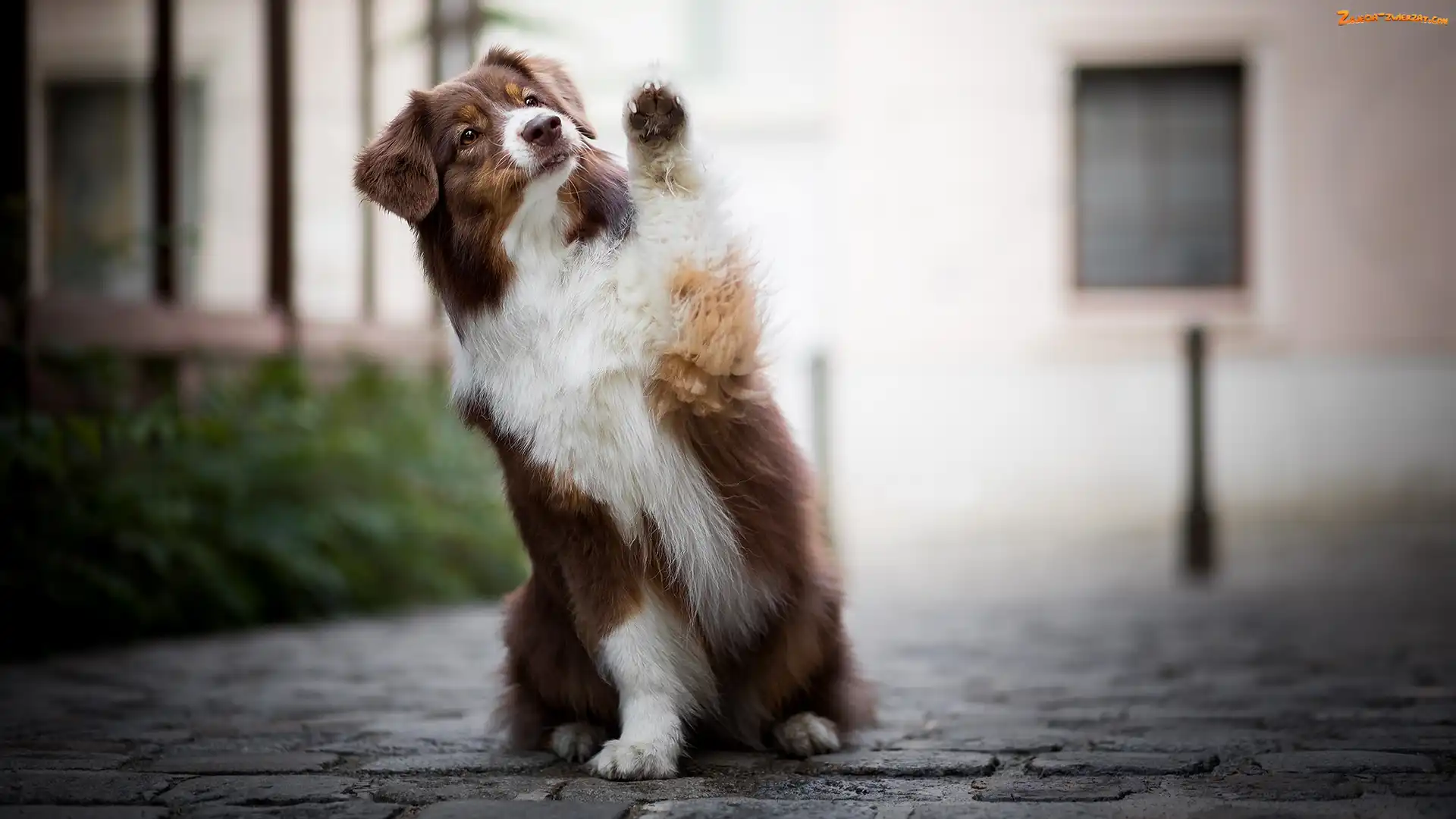 Zdjęcie: Brązowo-biały, Chodnik, Pies, Owczarek australijski